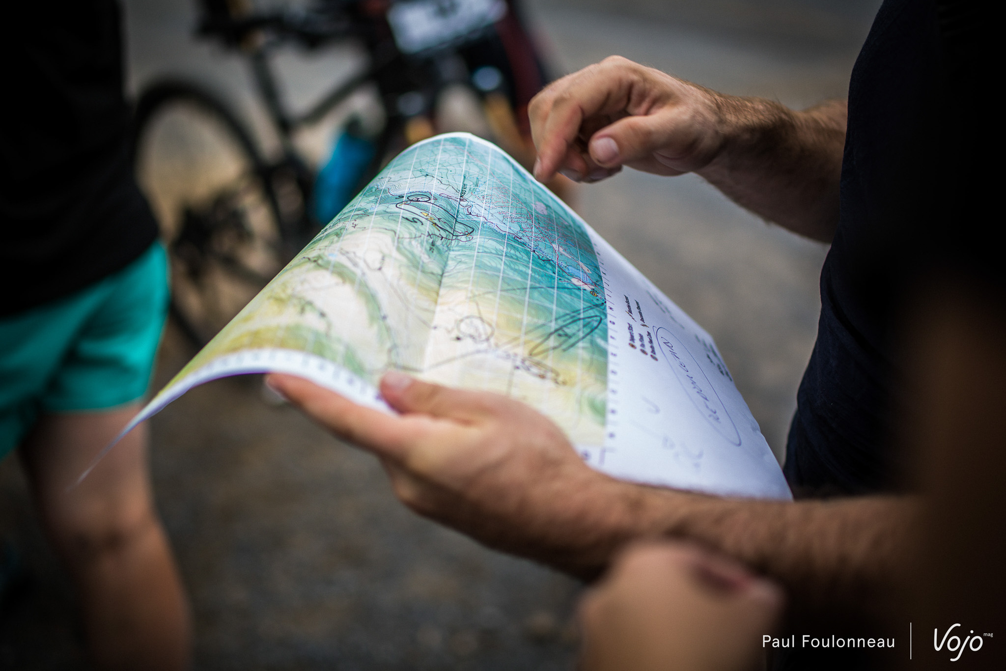 La première étape de cette seconde édition totalise vingt-six kilomètres. À trente minutes du camp de base de Mérici, la base militaire de Valcartier nous accueille sur son territoire protégé. Nous aurons effectivement le droit de rouler sur les sentiers d’entraînement des militaires de la 2e Division du Canada, avec un départ au Centre Castor. Flo et moi ne savions pas trop à quoi nous attendre en termes de niveau concernant les top pilotes de la course.