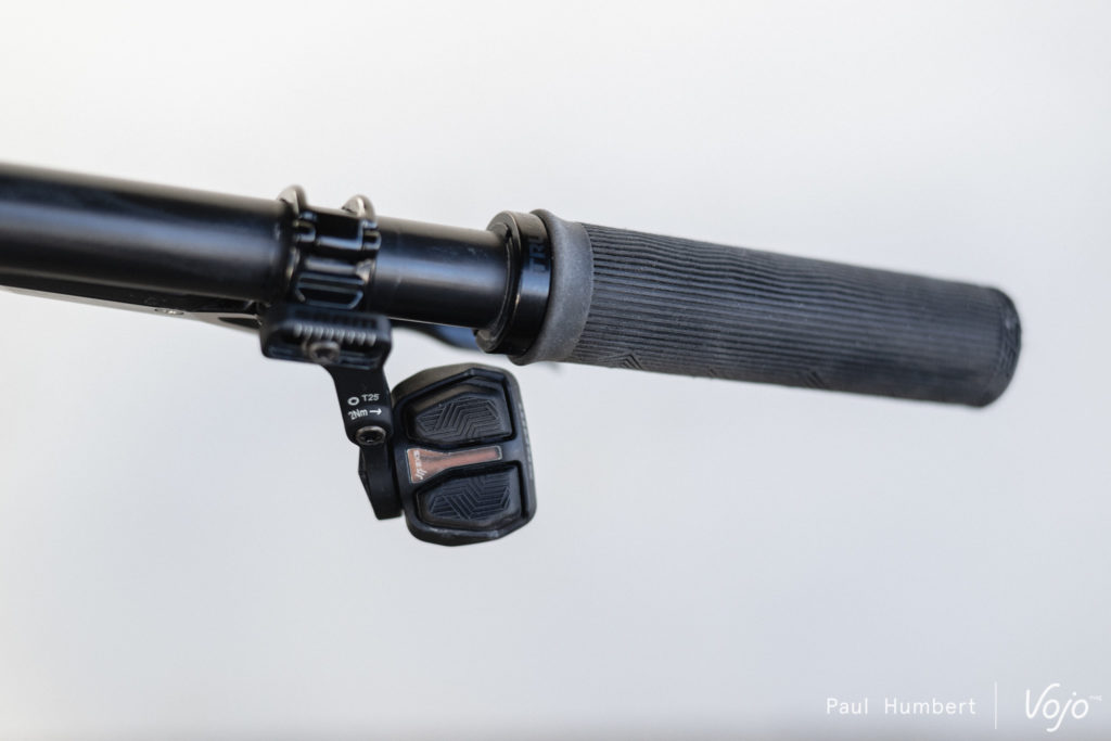 D’ailleurs, on ne s’y trompe pas chez Sram : « À ce stade, on ne peut pas avoir une ergonomie personnalisée, des cockpits personnalisés pour chaque pilote. Peut-être qu’un jour on en sera là […] mais en attendant, je pense que l’ajustabilité nous aide à atteindre un public plus large », convient Jochen, avant de poursuivre : « Souvent, de grandes possibilités de réglage et d’ergonomie sont considérées comme contraires à l’intégration. Cette nouvelle commande n’est certainement pas intégrée d’une manière visuelle, mais dans mon esprit, l’expérience de l’utilisateur, ce que le pilote fait sur le vélo, comment on sent les boutons, où ils sont positionnés par rapport aux mains, ça l’emporte toujours sur l’apparence. »