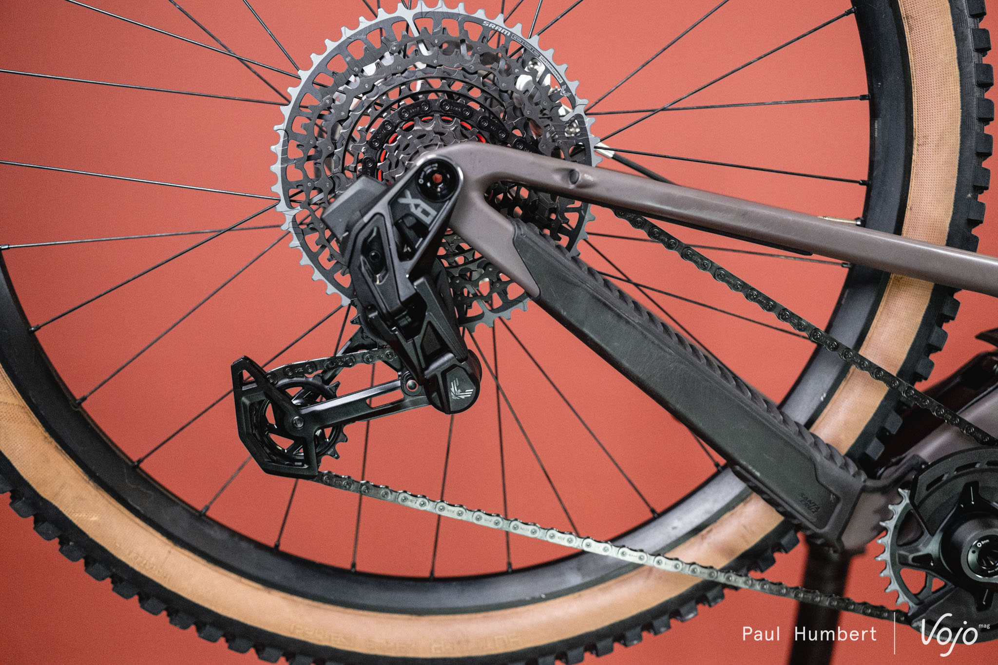 Ça y est ! Plusieurs années après les premières rumeurs issues de brevets, huit mois après l’avoir aperçue pour la première fois en compétition, elle est officiellement devant nos yeux : la nouvelle transmission Sram Eagle AXS sans patte de dérailleur, nom de code T-Type. Dans les grandes lignes, les changements paraissent mineurs puisqu’on reste en 12 vitesses et en AXS mais en réalité, ce sont bien de tout nouveaux groupes qui n’ont plus rien à voir avec leurs prédécesseurs. Vojo a eu l’occasion de faire partie des quelques médias triés sur le volet qui ont pu tester pendant les six derniers mois ces nouveaux groupes Sram Eagle AXS, déclinés en XX et X0. Voici notre reportage :