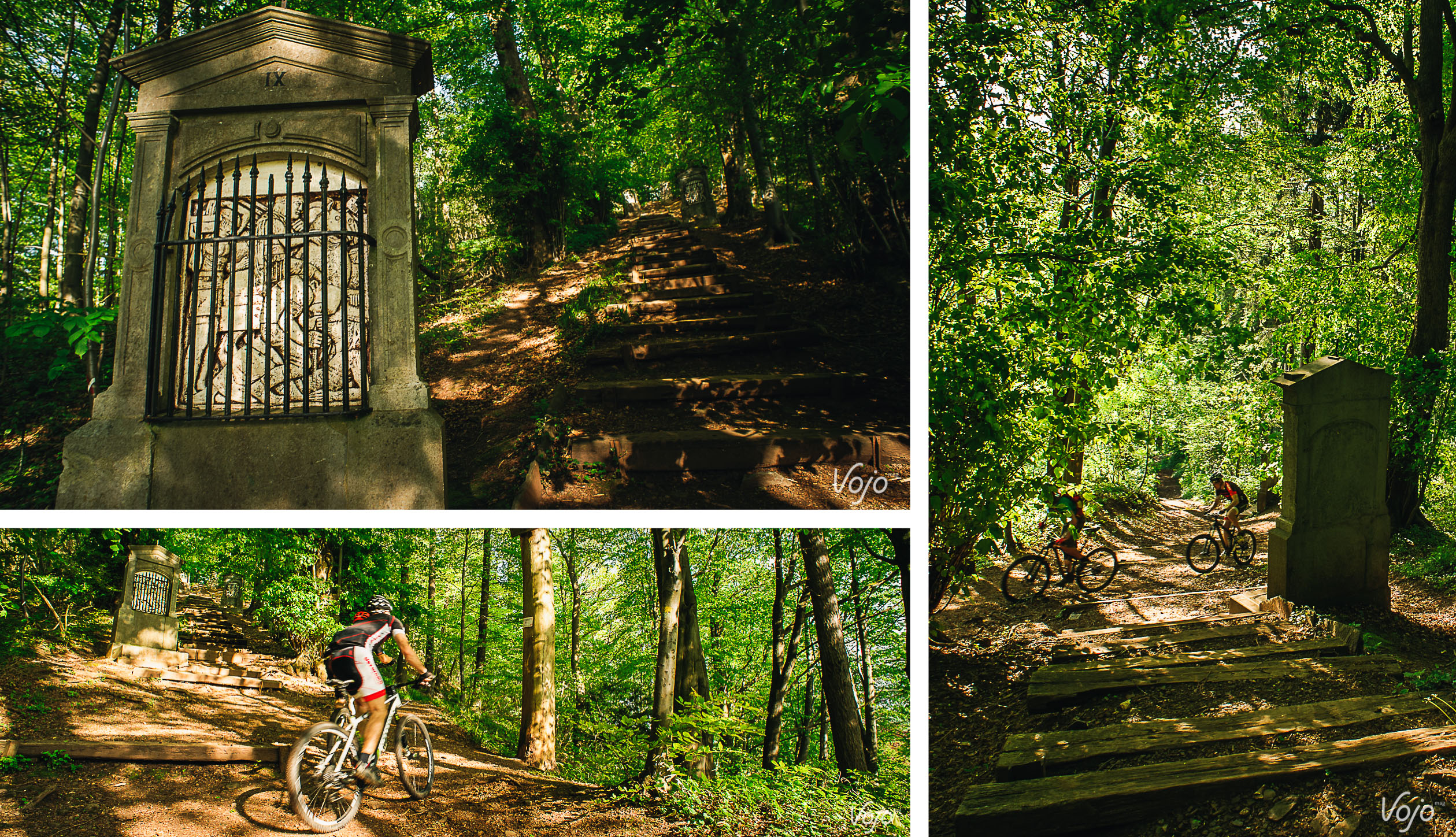 C’est avec eux, et sous l’oeil attentif de Saint Népomucène, que nous sommes partis sur la boucle de 42km destinée à vous faire découvrir quelques passages emblématiques de l’épreuve. Si jamais vous n’avez pas les jambes, il est possible de l’amputer de quelques boucles pour revenir à 33km (ce qui est possible en regardant sur la carte les points où le tracé passe deux fois à proximité du même endroit). Quant aux distances marathon de 65, 90 et 115km, elles empruntent de nombreuses portions privées qui ne sont ouvertes que le jour de l’épreuve, le 21 juin cette année. Si vous voulez goûter au « vrai » Raid, vous savez ce qu’il vous reste à faire !