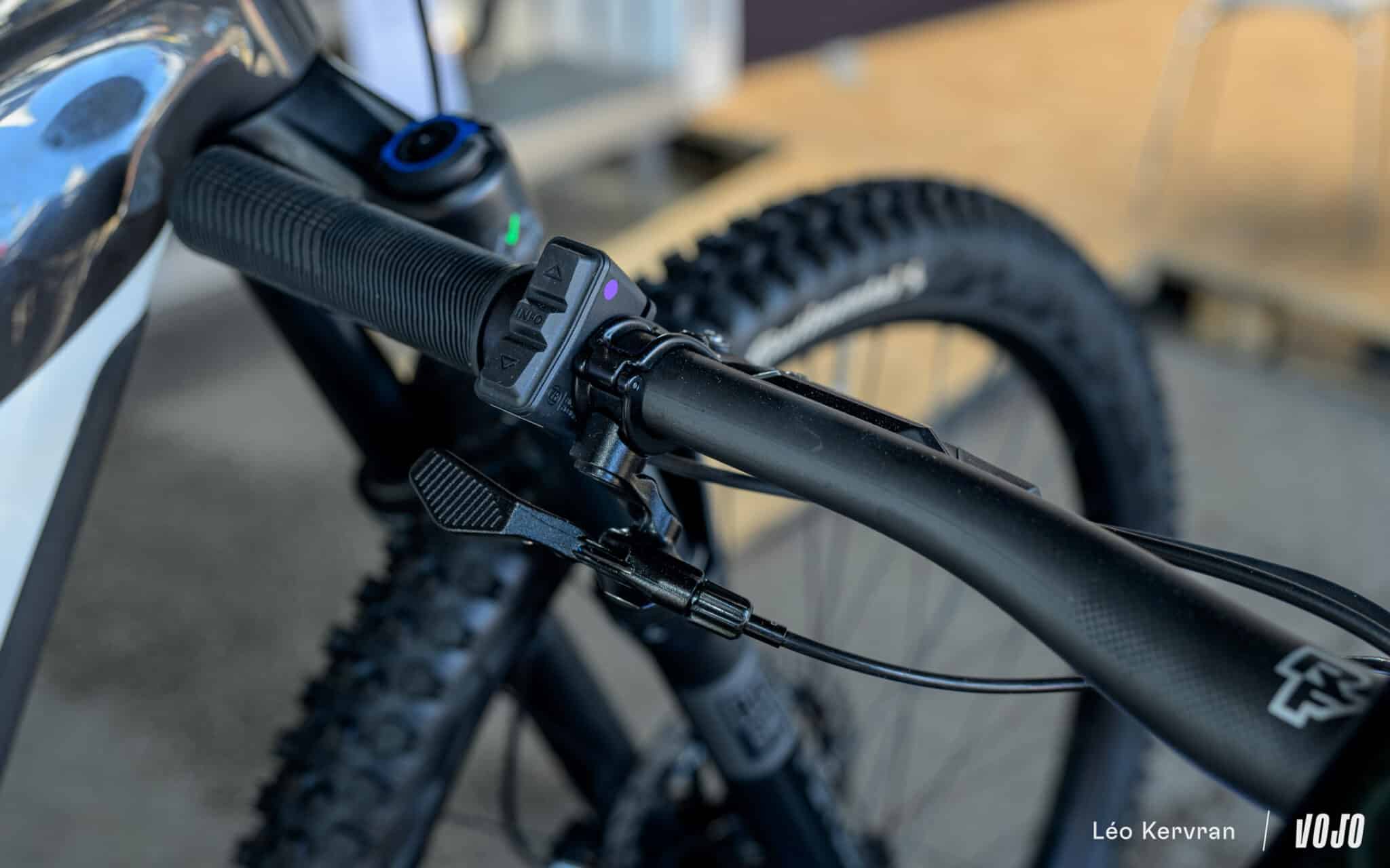 On retrouve dessus les fameuses suspensions électroniques SR Suntour Tact bien sûr, mais aussi des roues P1 / Non Plus (lire notre essai) ici montées avec des rayons Berd et des pneus Continental Race King inédits, bénéficiant à la fois d’un dessin légèrement revu et d’une carcasse différente des pneus du commerce.