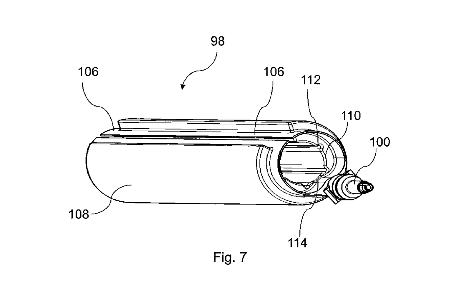 Avant de passer à l’invention suivante, il convient de se demander à quoi servait la molette sur l’amortisseur que nous avions aperçue. A ce stade, et à en croire l’illustration, on pourrait spéculer qu’elle permettrait d’ajuster la course du piston flottant 92. Cela aurait pour effet d’accroître ou de minimiser son action.