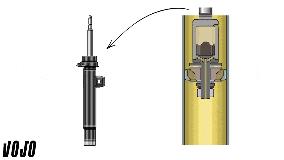 Néanmoins, si le mouvement prend de l’ampleur, le piston flottant arrive alors en fin de course et empêche l’huile d’emprunter ce chemin alternatif. De cette manière, l’huile n’a d’autre choix que de passer par le piston principal. Cela a alors pour effet de changer la force d’amortissement appliquée.