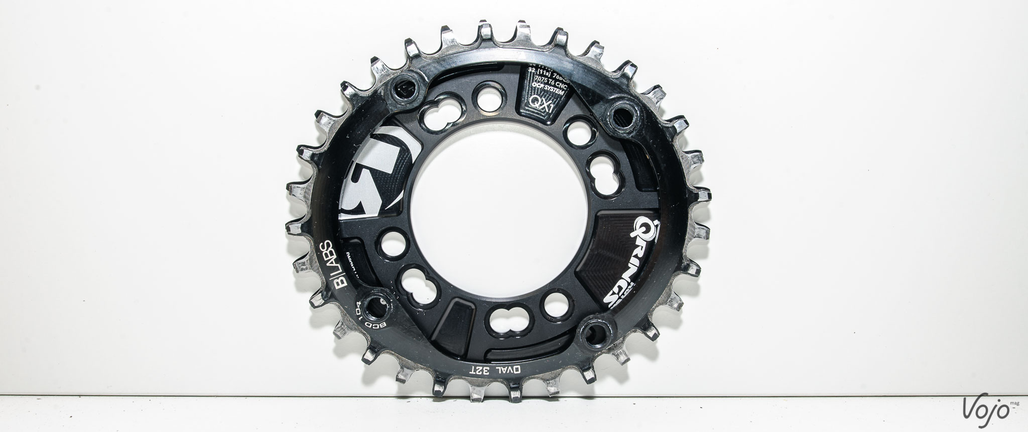 Bingo : nous avions justement sous la main un QRing en 32 dents de la firme espagnole et, quand on les superpose comme sur la photo ci-dessus, on se rend compte qu’ils sont strictement identiques ! Un détail assez troublant quand on lit l’inscription « Patent Pending » sur les plateaux Rotor (brevetés). Y aura-t-il protestation de Rotor ? Ou une différence subtile permet-elle de contourner le brevet ? En tout cas, la seule différence visible est une inversion des dents fines (narrow) et épaisses (wide) de l’un par rapport à l’autre. On Notera aussi un avantage du B-Labs : il ne nécessite pas d’étoile spécifique contrairement au Rotor. Mais il ne permet pas le placement sur plusieurs positions (3 trous sur les QRing).A l’atelier :