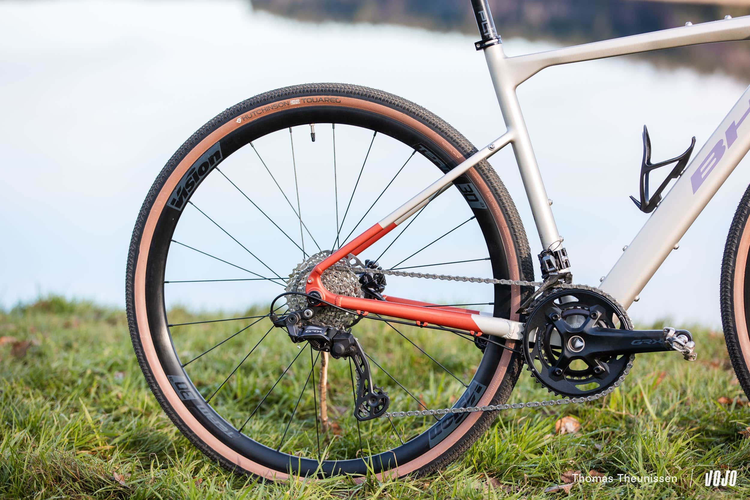 BH fait confiance à FSA avec les Vision Team TC30i pour ses roues. Ce modèle entrée/moyen de gamme est équipé de jantes en aluminium de 30 mm de hauteur. Ce n’est pas un modèle de légèreté, avec 1920 g la paire, mais on sait que Vision fait des produits robustes. Ces roues sont montées avec des pneus Hutchinson Touareg en 40 mm de largeur.