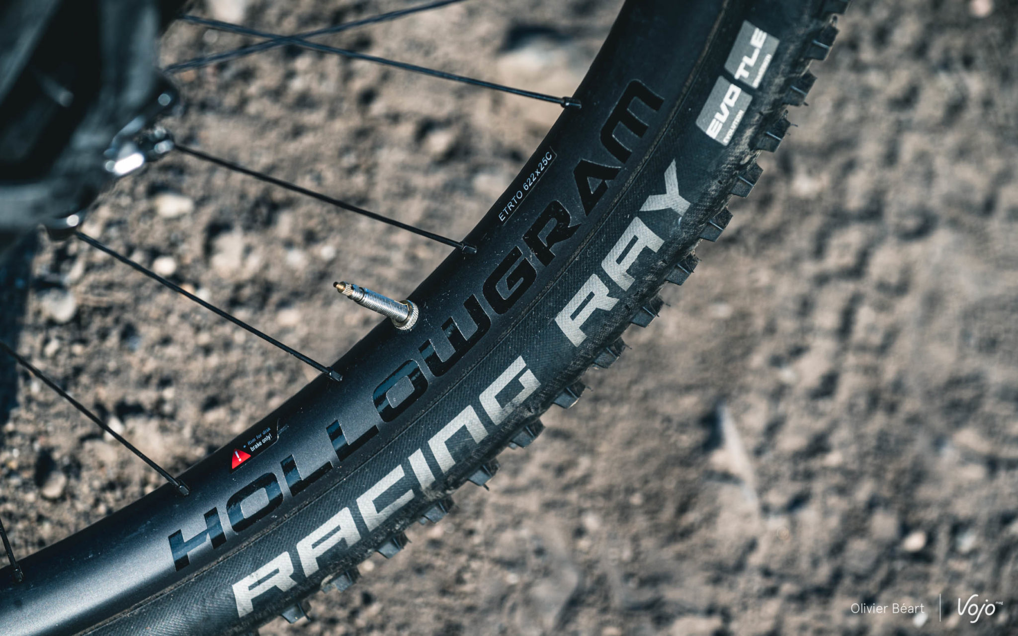 Au niveau de l’équipement, le Scalpel XC étant en version Team très haut de gamme, il est logiquement mieux équipé que le SE. Mais les fondamentaux sont très similaires, à commencer par les roues Hollowgram carbone à jantes de 25mm. La différence se fait au niveau des pneus, en 2.35 sur le SE et et 2.25 sur le XC, mais dans les deux cas on profite de montes aussi accrocheuses que polyvalentes.