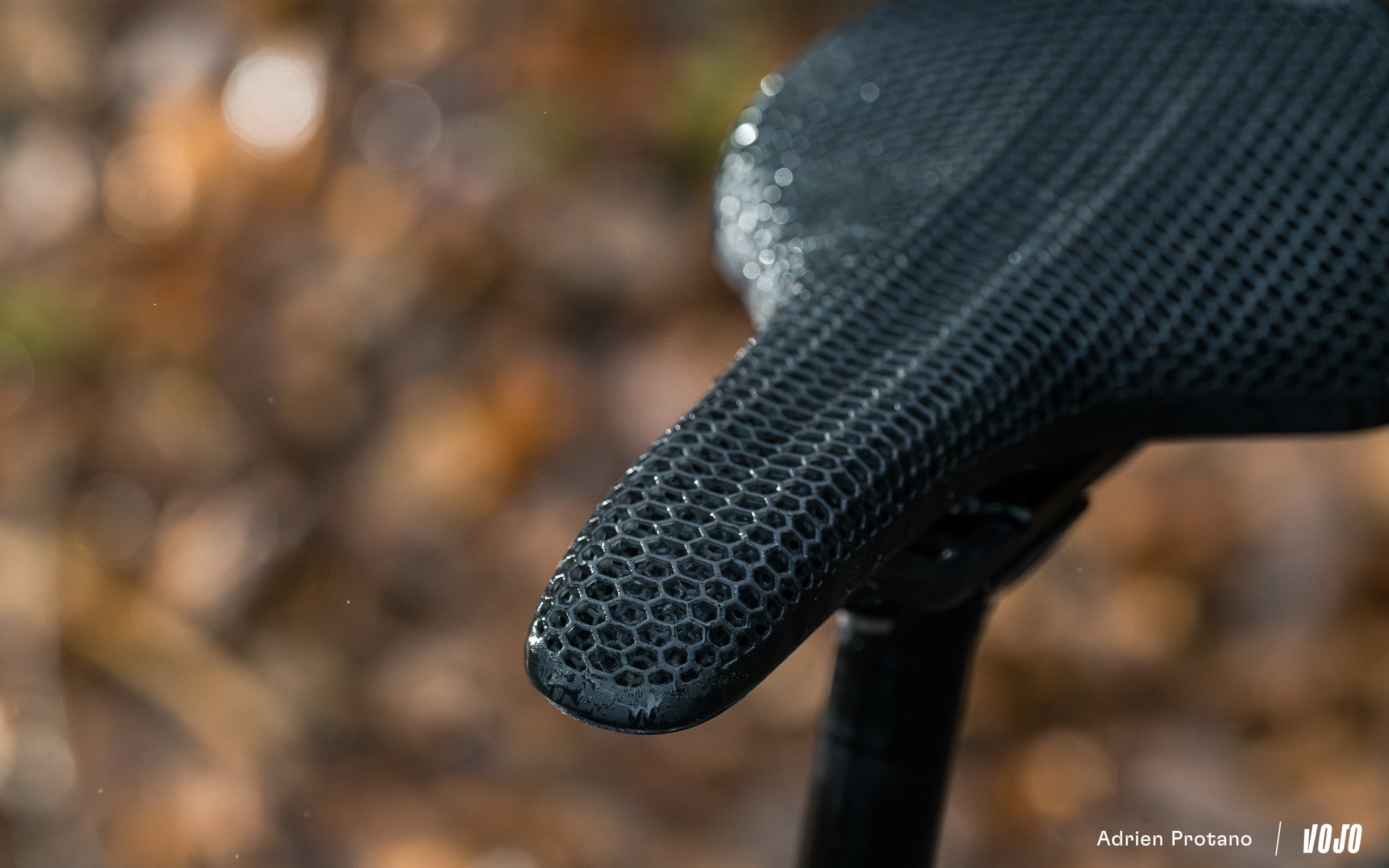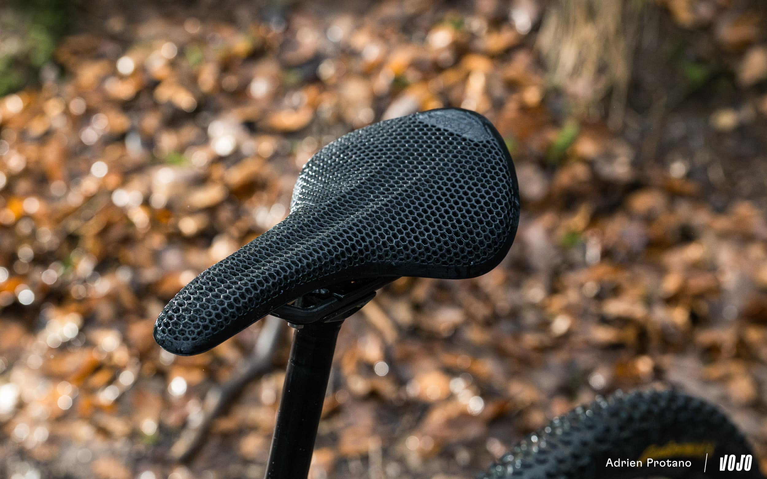 Dernier point qui nous interrogeait avant l’essai : l’entretien. La structure en nid d’abeille, typique de l’impression 3D, pourrait laisser penser qu’elle retient facilement la boue ou les impuretés. Dans la pratique, rien d’alarmant. La saleté s’accumule un peu plus que sur une selle classique mais un nettoyage standard suffit largement à lui redonner fière allure.
