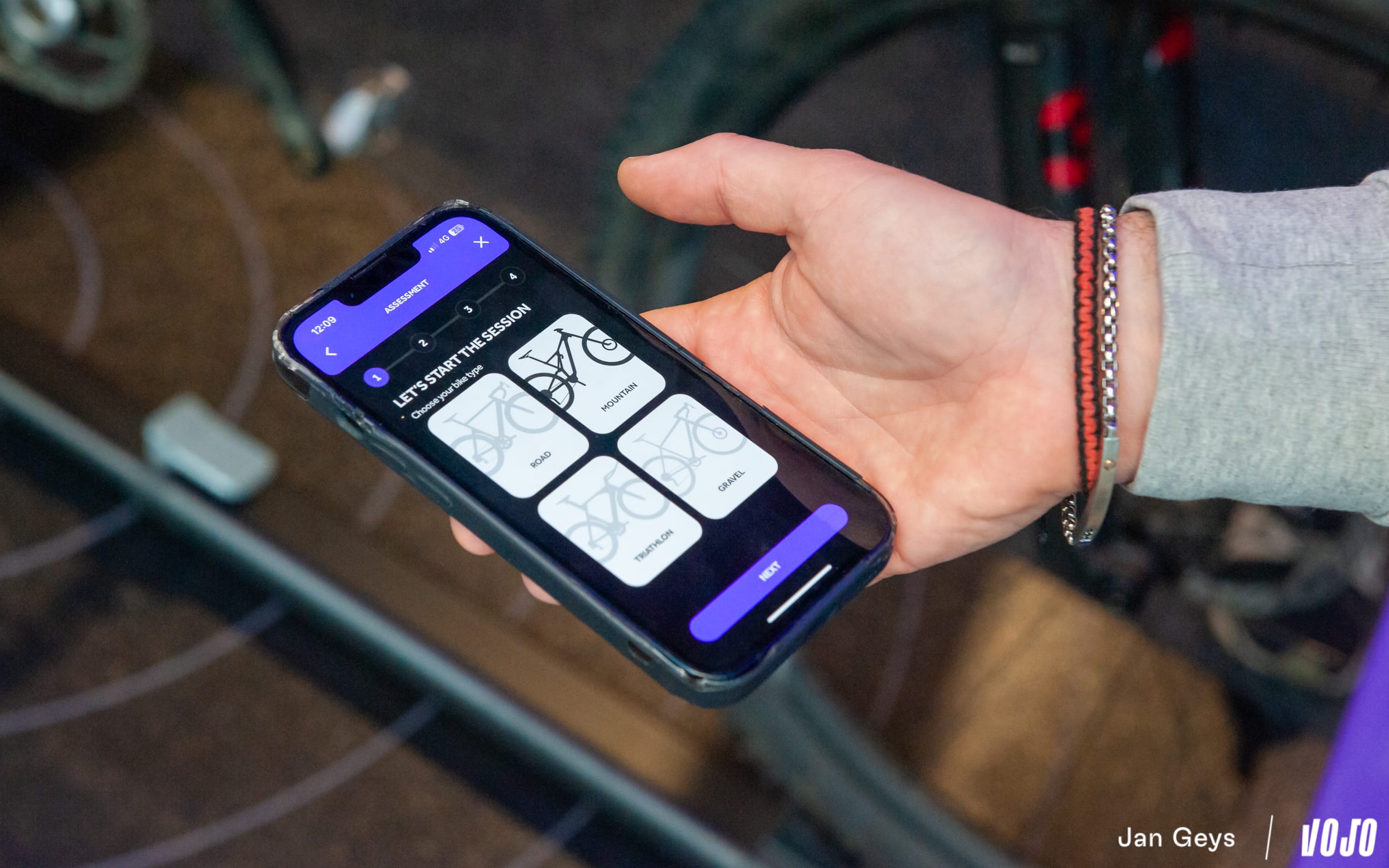 La séance débute par le remplissage d’un questionnaire personnalisé via l’application dédiée que Fizik met à disposition de ses revendeurs partenaires. Un point essentiel y est abordé : le vélo sur lequel la selle sera utilisée. Car entre un VTT et un gravel, les différences ne se limitent pas à la géométrie. La position des mains sur le cintre influence directement la bascule du bassin… et donc la répartition des pressions sur la selle.