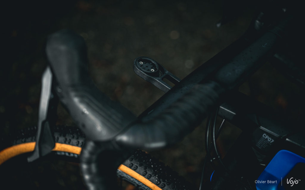 Derniers détails : comme sur les autres postes de pilotage intégrés de chez Canyon, le serrage de la potence se fait par deux vis très discrètes situées à l’arrière de la potence, et il est possible de régler la hauteur du poste de pilotage sur 15mm au moyen d’entretoises. Quant au réglage, malgré le look atypique de l’ensemble, il demeure au final très classique. Il dispose aussi d’un porte GPS en option (monte type Garmin).
