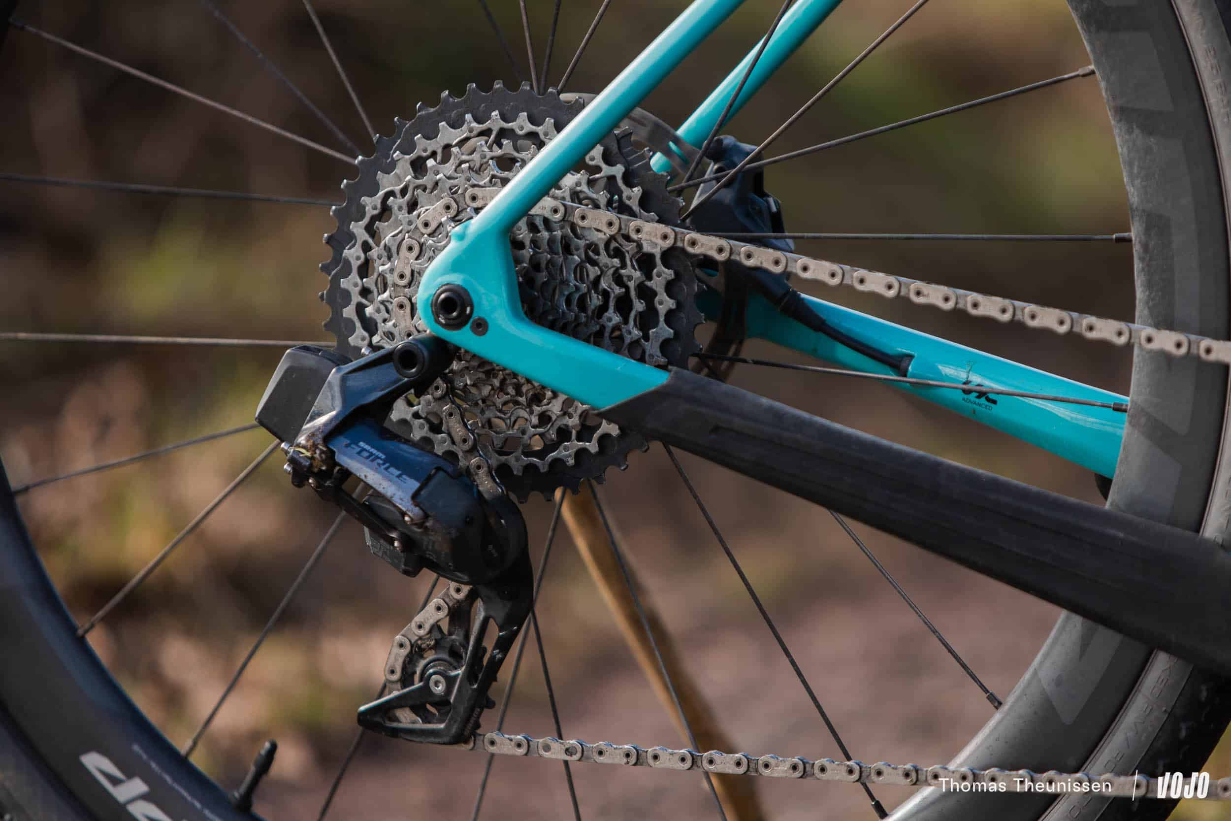 L’ergonomie des leviers Sram Force a progressé et devient plus adaptée à un usage gravel aujourd’hui, mais l’efficacité globale du freinage Sram reste un peu en retrait par rapport à Shimano selon nous. En disques de 160mm, ça freine, mais on peut faire mieux au niveau du toucher et de la résistance à la chauffe dans les longues descentes.