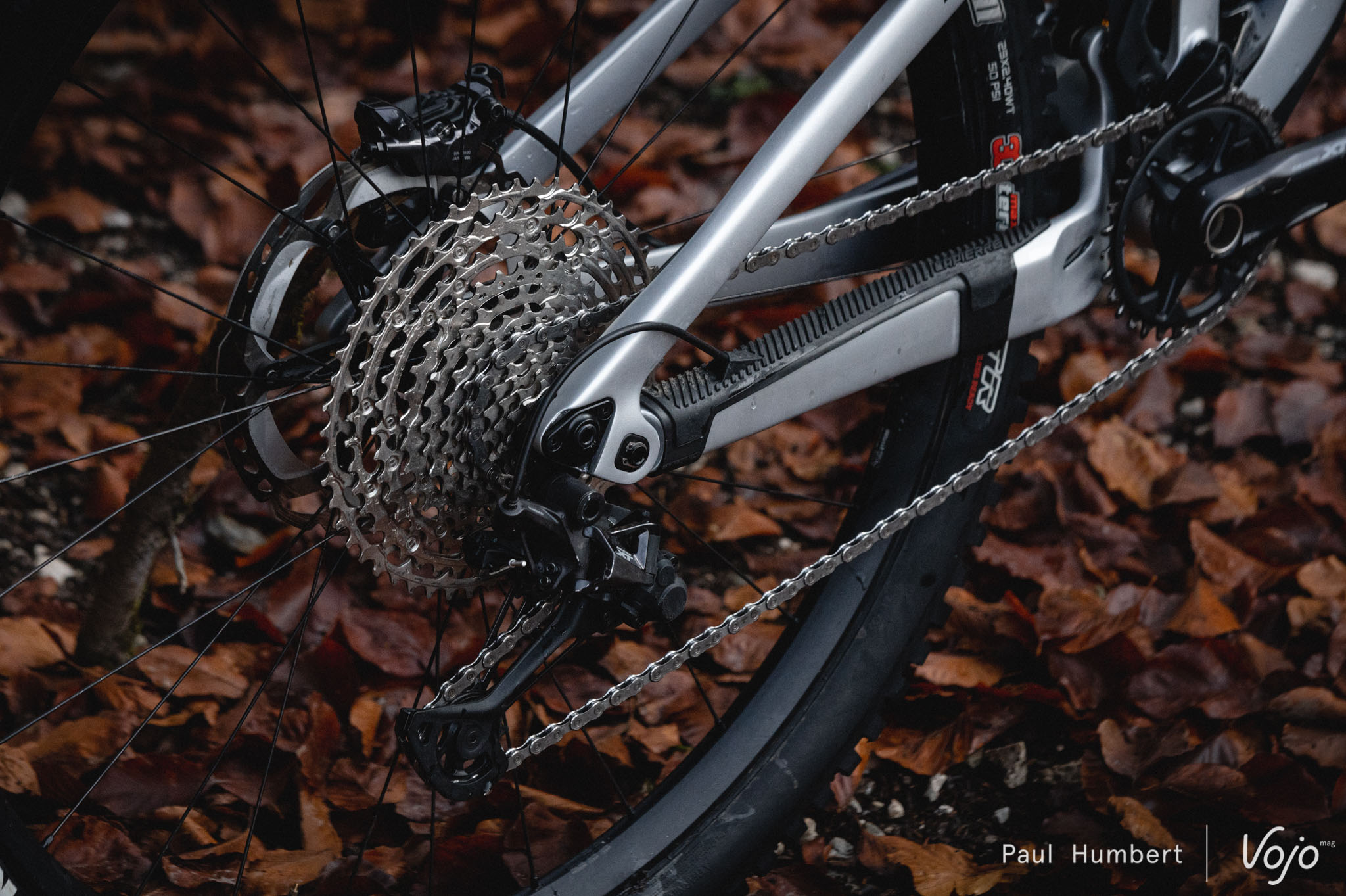 Sans être exceptionnel, le train roulant est également à la hauteur : de fiables roues DT Swiss E1700 (30 mm de largeur interne) chaussées de pneus Maxxis, avec un Assegai 2.5 WT devant et un DHR II 2.4 WT derrière. Seul le choix de la carcasse interpelle, puisque l’Assegai est en DoubleDown, très solide et adapté à l’enduro, mais le DHR II est en Exo, un peu léger à notre goût. A défaut de monter deux DoubleDown ou deux Exo+, inverser au moins les deux carcasses (Exo à l’avant et DD à l’arrière) aurait eu un peu plus de sens car la roue arrière est plus exposée aux crevaisons.