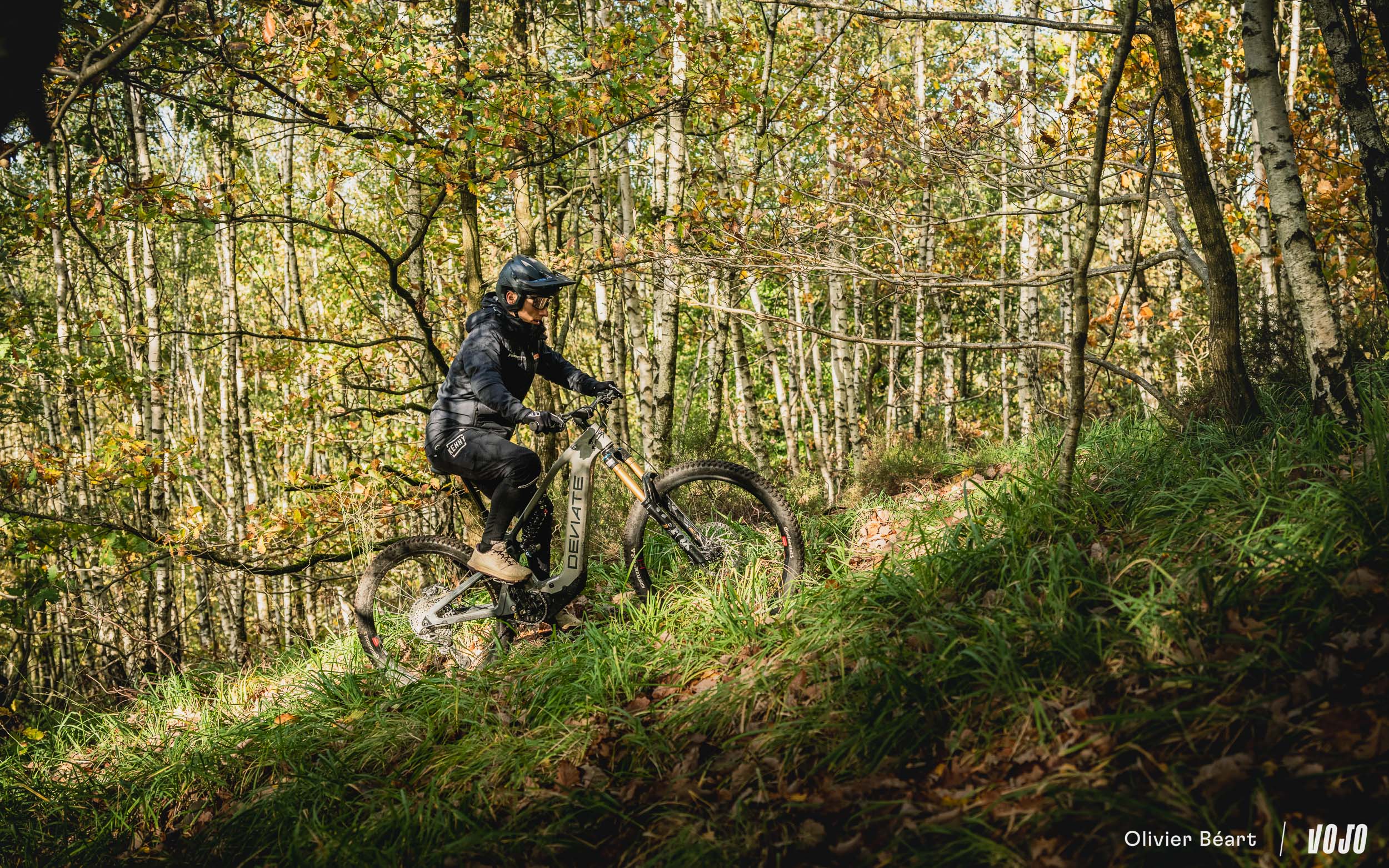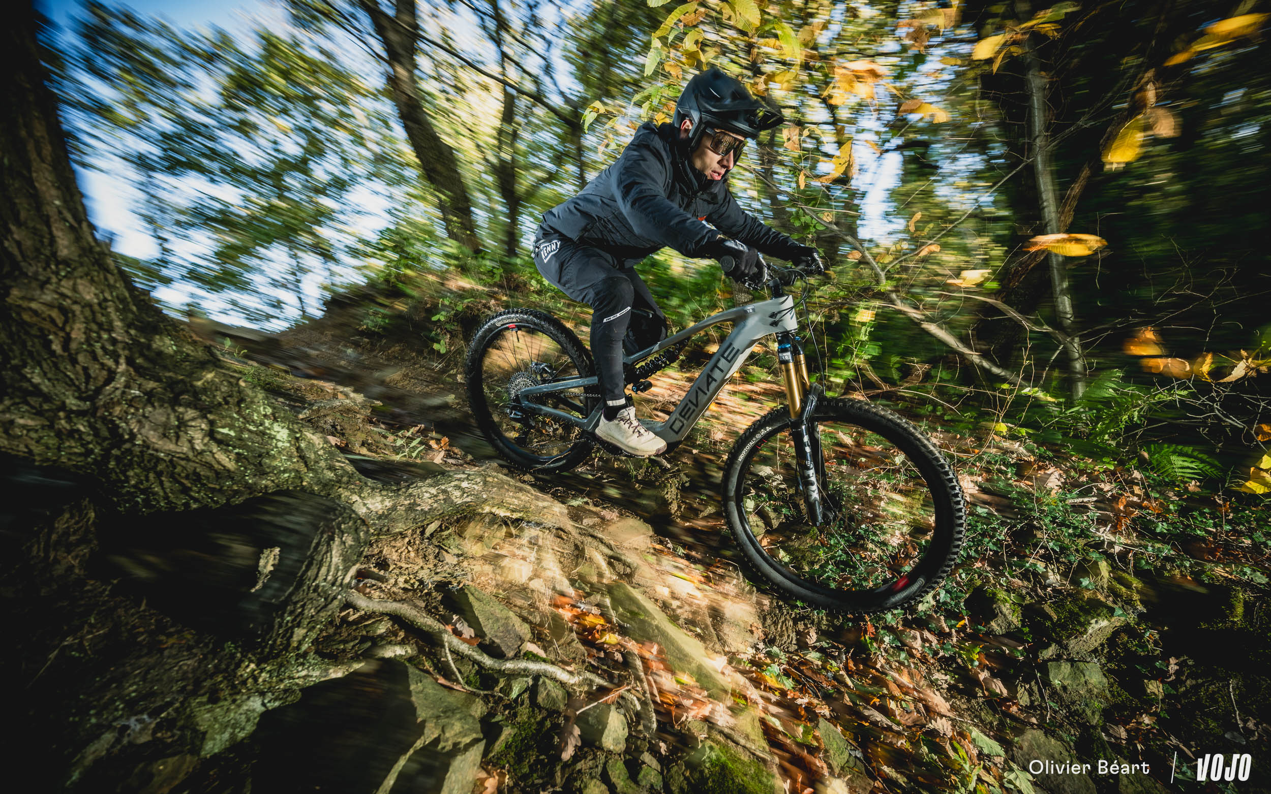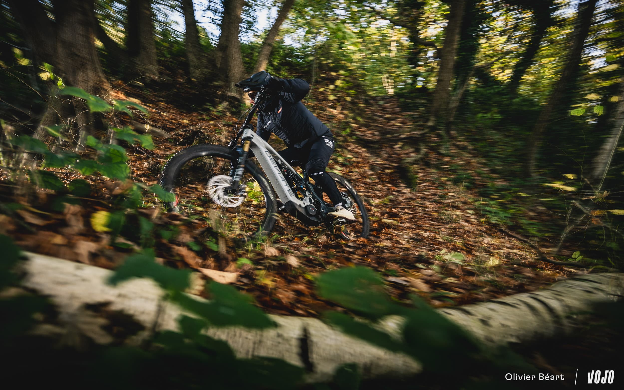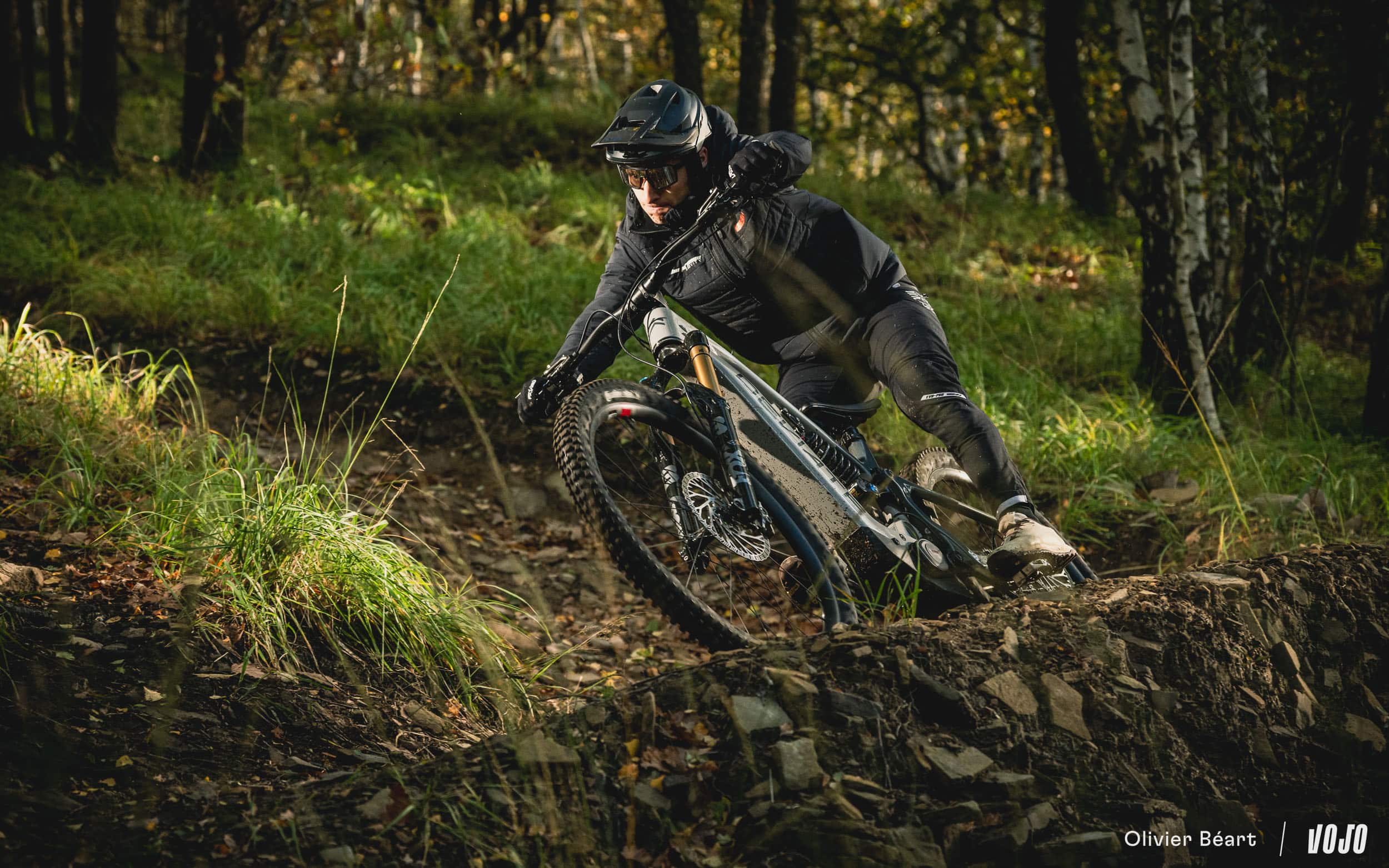 Pour la petite histoire, c’est grâce à Levy Batista que nous avons eu l’occasion de rouler sur le nouveau Kurgan ; un vélo que le pilote français a roulé au championnat du monde e-EDR cette année, en lieu et place de son habituel Rocky Mountain dont la motorisation n’était pas homologuée pour cette course. Avant que le vélo ne reparte pour l’Ecosse, il nous a laissé son Kurgan pendant une grosse semaine pour que nous puissions tester cet oiseau rare qui a été présenté en août dernier et dont les premiers exemplaires de production arriveront en janvier 2026.