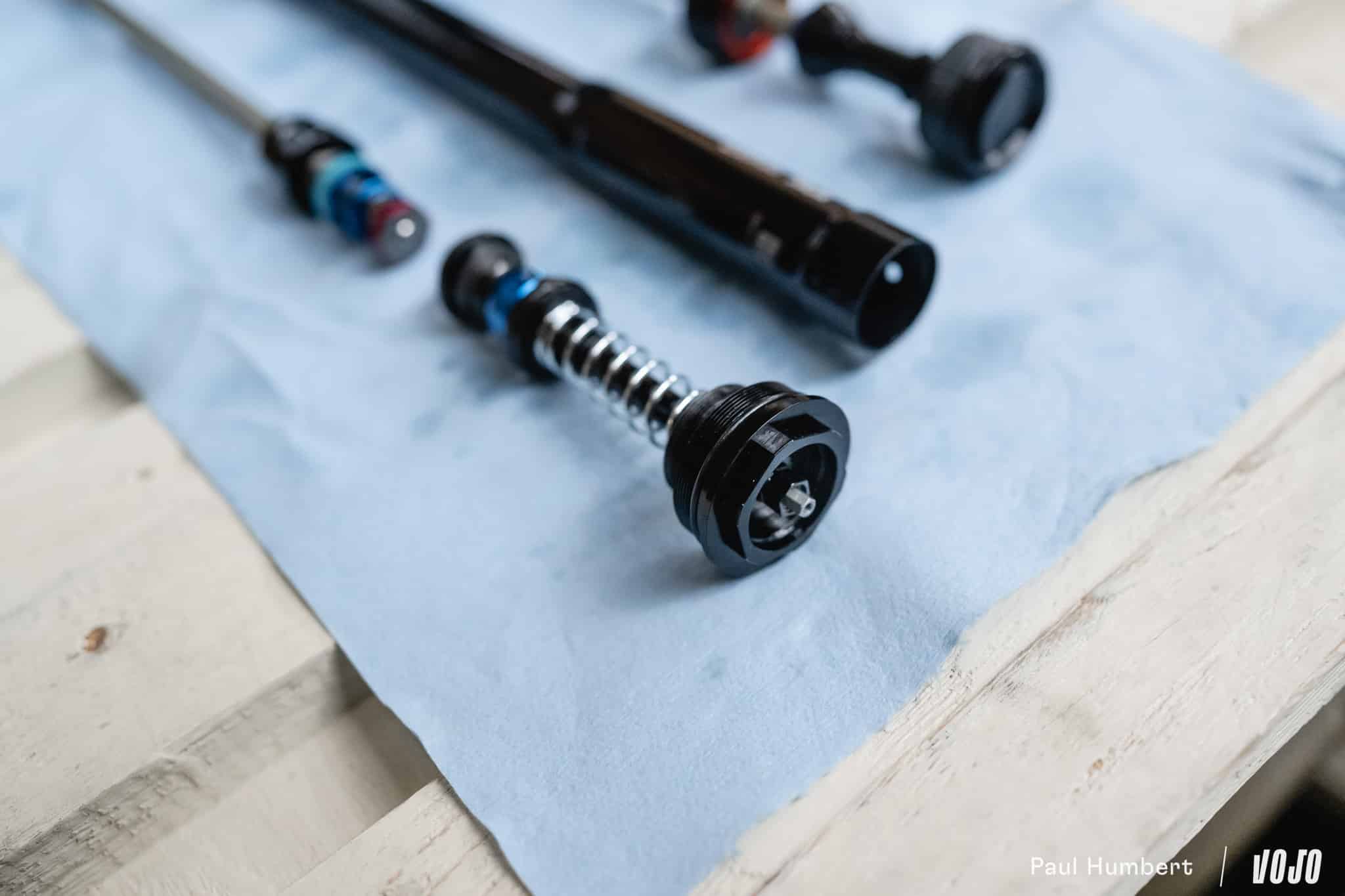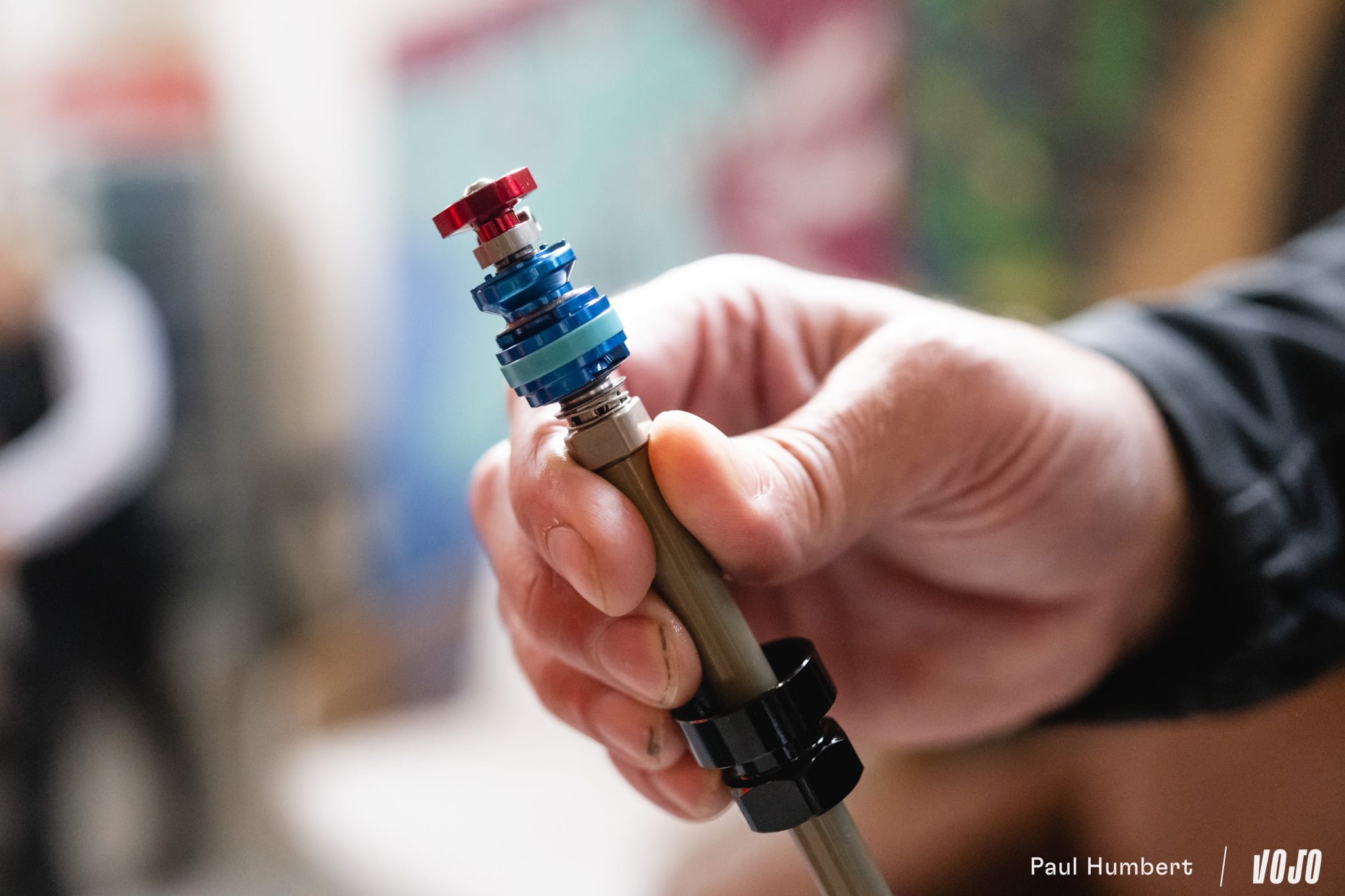 Un « bumper » de fin de course complète le dispositif côté air pour « les gens qui veulent rouler une fourche plus linéaire mais qui ne veulent pas d’une fin de course qui frappe. On a toutefois laissé le plus de course disponible possible. »