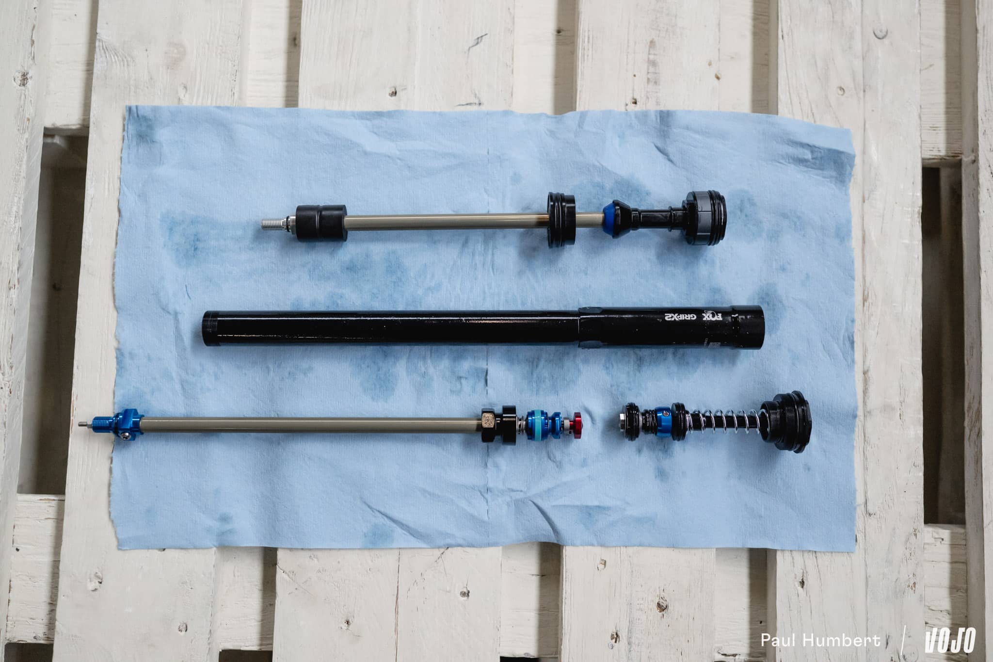 La 38 accueillera deux cartouches : la Grip X ou la Grip X2. La première est plus simple, légère et accessible quand la seconde offre une plage de réglages plus poussée. La cartouche Grip X2 est d’ailleurs légèrement retravaillée pour permettre plus de circulation d’huile dans le piston et plus de potentiel de réglage. Ariel Lindsley précise : « cela nous permet de pouvoir apporter plus de support à certains riders, mais surtout on a une sensation de souplesse plus grande, comme si vous aviez moins d’air dans vos pneus. »
