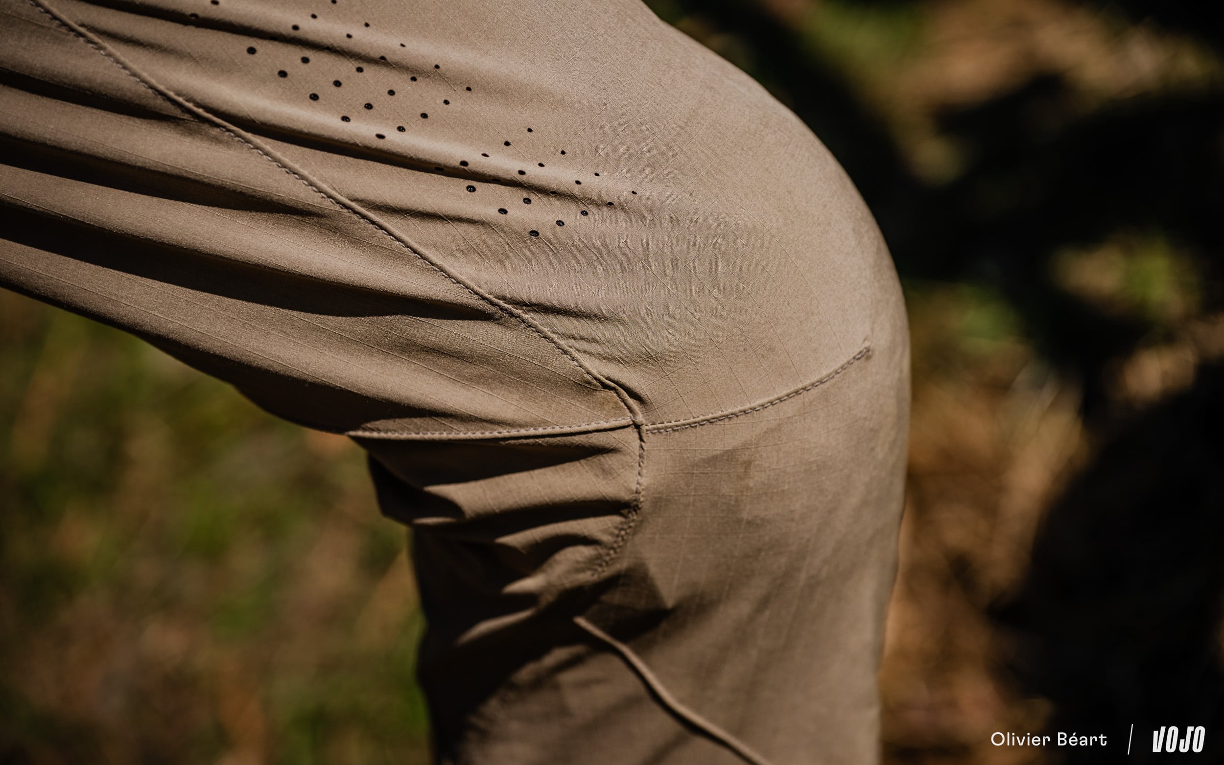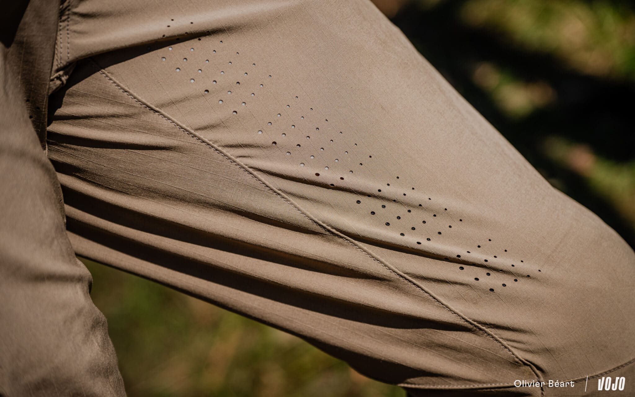 Les pantalons et shorts Fox Flexair sont constitués d’un polyester à la fois très fin et léger mais résistant à l’abrasion. Il est aussi résistant à l’eau tout en restant respirant et est perforé de petits trous à certains endroits stratégiques pour permettre à l’air de circuler.