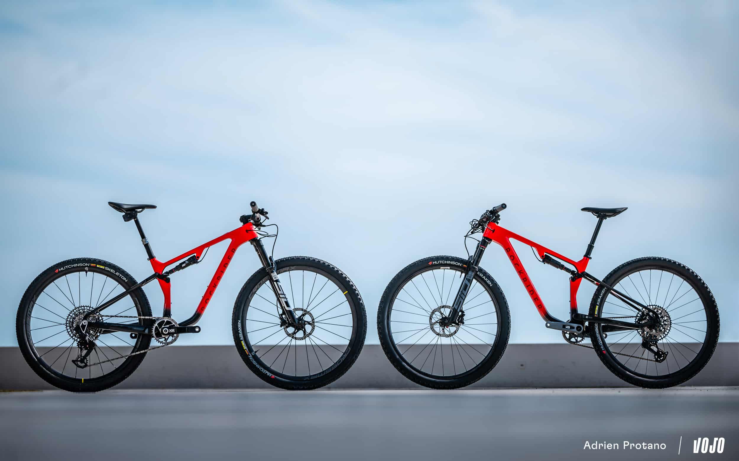 Cocorico du côté du train roulant puisque l’on retrouve une association de roues Mavic et de pneus Hutchinson. Les roues sont des Mavic Crossmax XLR, et celles-ci affichent une largeur interne de 30 mm pour un poids de 1595 g. « La question s’est posée par rapport aux Crossmax Ultimate, mais c’est le facteur du prix qui a été décisif. Pour rester en dessous de 6500€, il fallait opter pour les Crossmax XLR. C’est peut-être le seul « compromis » que l’on a dû faire sur cette version », nous explique la marque. Pour les pneus, c’est un Hutchinson Kraken Racing Lab en 2,30 qui chausse la roue avant et un Hutchinson Skeleton Racing Lab (carcasse Hardskin) en 2,30 que l’on retrouve à l’arrière.