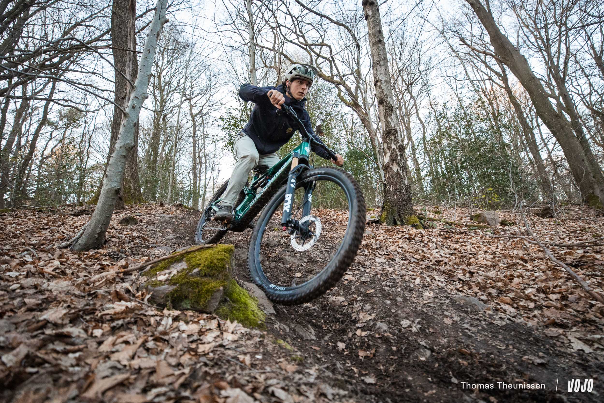 À la descente, les sensations se confirment. On retrouve un vélo équilibré, stable, assez facile à prendre en main sur une large variété de terrains. Le boîtier de pédalier bas et les bases plutôt longues apportent un vrai sentiment de sécurité, tout en restant suffisamment agile pour s’amuser.