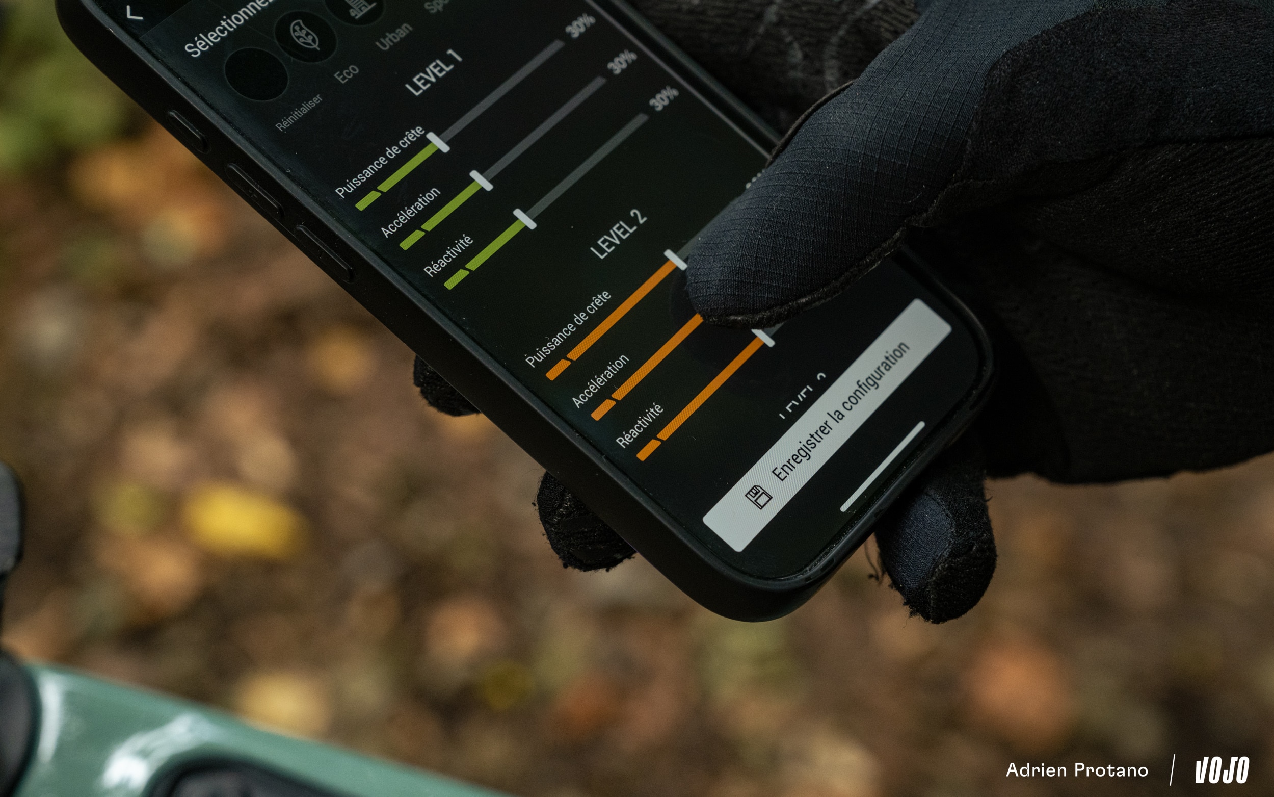 Trois grands paramètres sont réglables pour les trois modes disponibles : la puissance crête, l’accélération (qui va jouer sur le pourcentage d’assistance délivré par le moteur par rapport à l’effort fourni par le pilote) et la réactivité (qui va jouer sur le temps de réponse sur moteur).