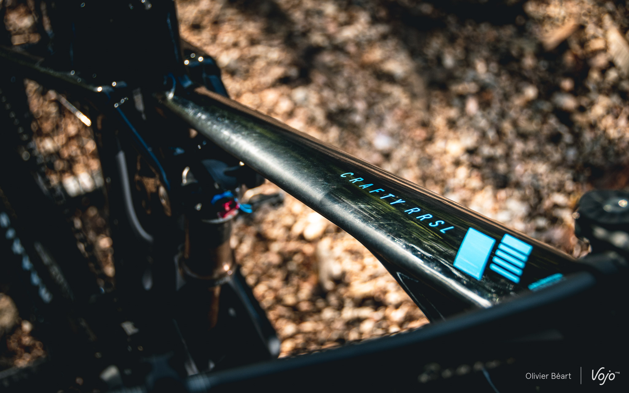 Avec 150mm de débattement arrière et une fourche de 160mm devant, on est bien dans cet équilibre sur le segment e-bike. Les roues de 29″ se sont aussi imposées assez vite, quitte à privilégier la précision de pilotage à la facilité pour des pilotes moins aguerris, même si les pneus restent d’une section assez généreuse (2.6″). Mais tout cela, c’est déjà sur le Crafty. Alors intéressons-nous plutôt maintenant à ce que la version carbone apporte de plus.