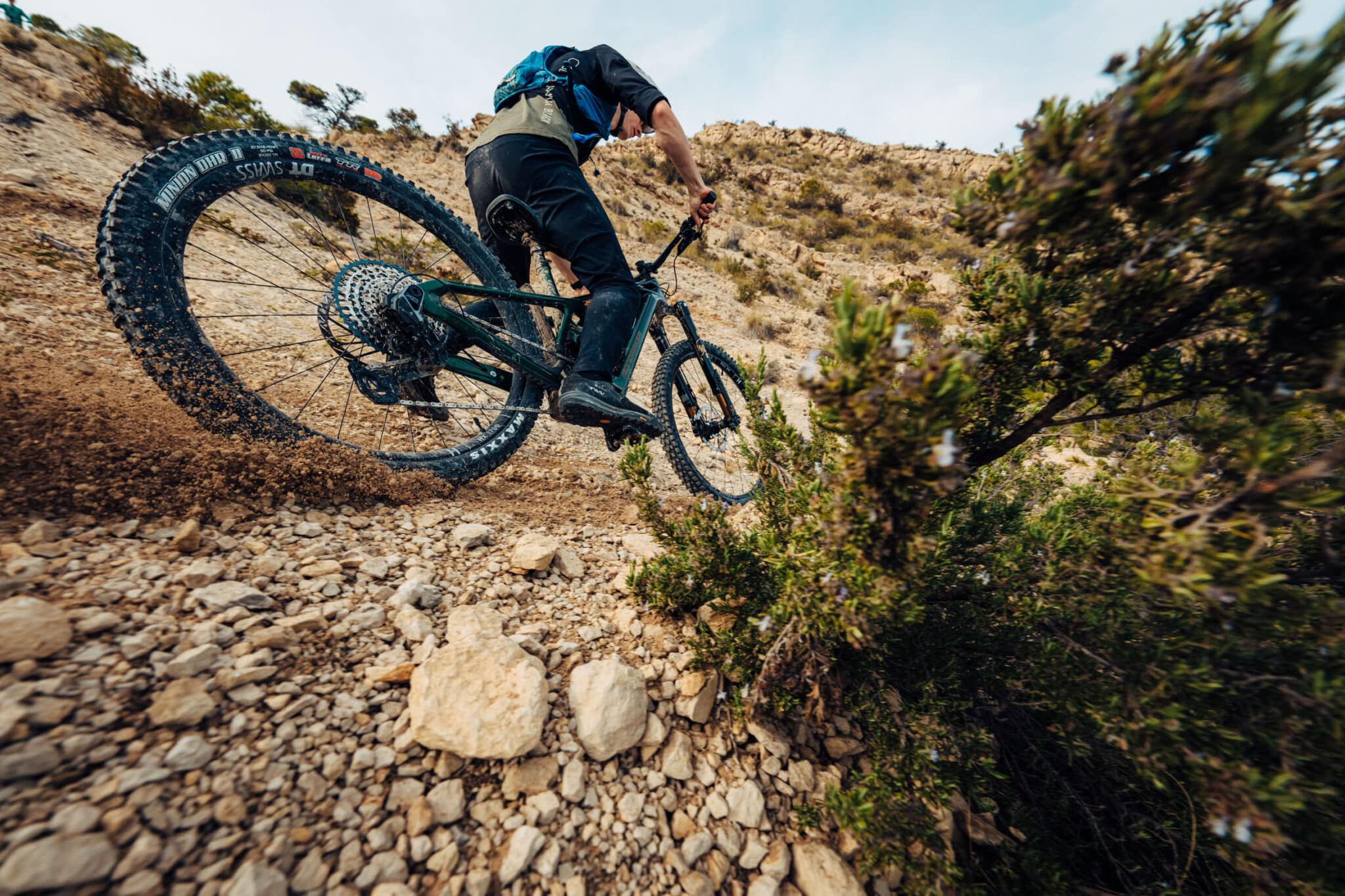 Enfin, la version la plus luxueuse, le XR, pointe à 12499 €. Sur cette version, la paire de roues grimpe encore d’un cran avec des DT Swiss HXC 1500, tout comme les freins avec une paire de Maven Ultimate. La tige de selle télescopique passe à l’électronique avec une Reverb AXS.
