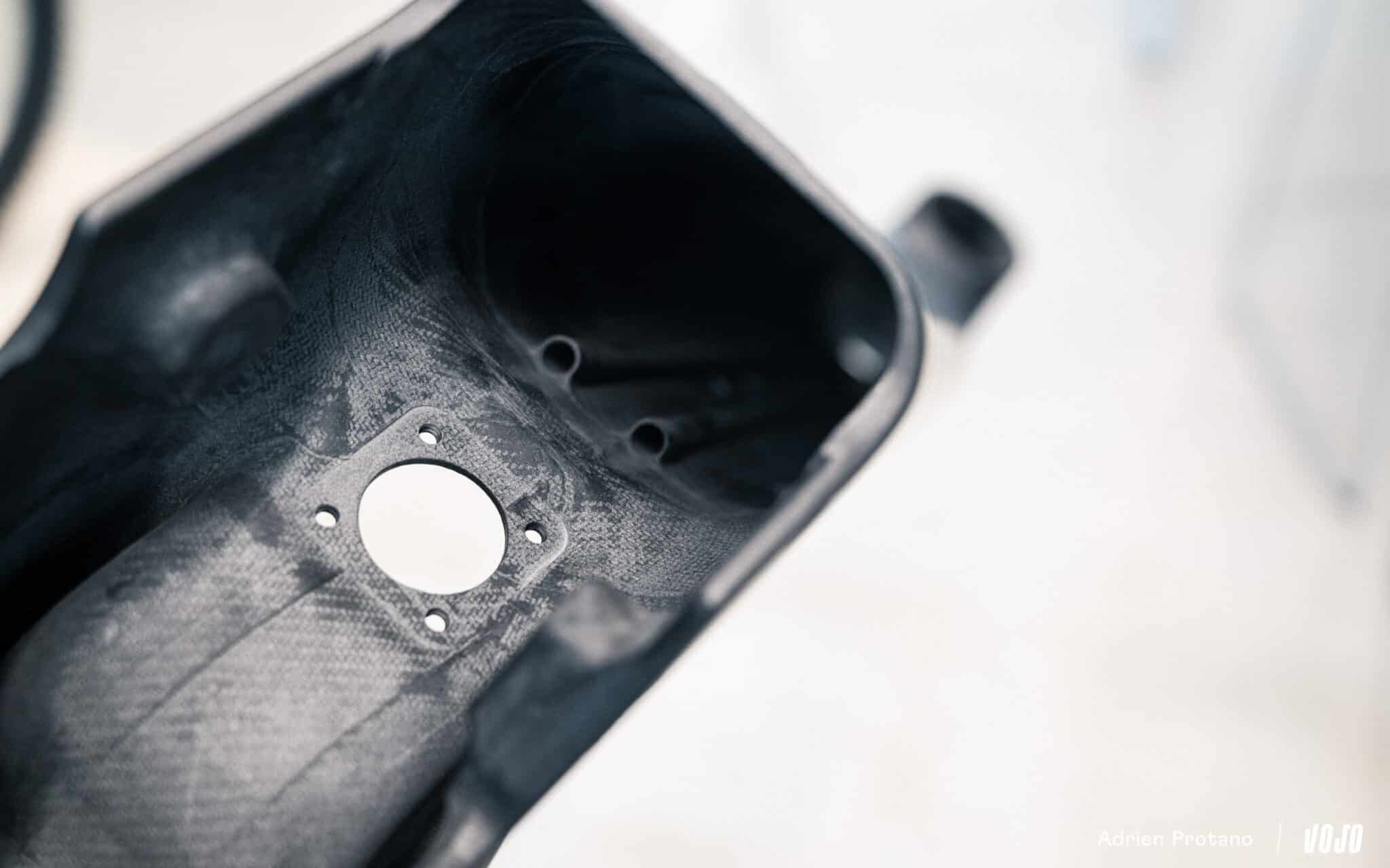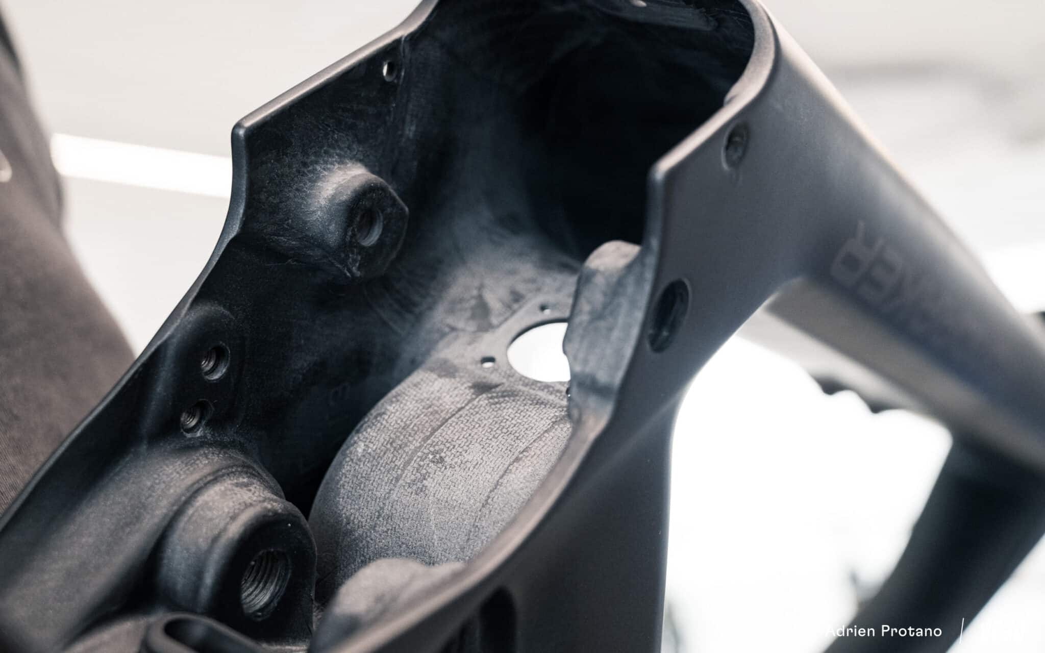 Pour la première fois, Mondraker fait appel à des machines CNC 6 axes pour le perçage et la finition du cadre, venant remplacer des opérations jusqu’ici réalisées manuellement. Un choix qui permet d’améliorer la précision et la constance dans la fabrication, nous détaille Luis Martìnez, Global Product manager.
