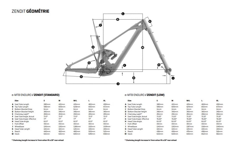 Le Zendit est livré en montage mulet de série, soit une roue de 29” à l’avant et 27,5” à l’arrière, de quoi favoriser le franchissement tout en accentuant l’agilité du vélo avec la plus petite roue arrière. Une option que Mondraker considère aujourd’hui comme la plus équilibrée pour un e-bike d’enduro, et c’est la raison pour laquelle la marque ne propose que cette configuration de série.