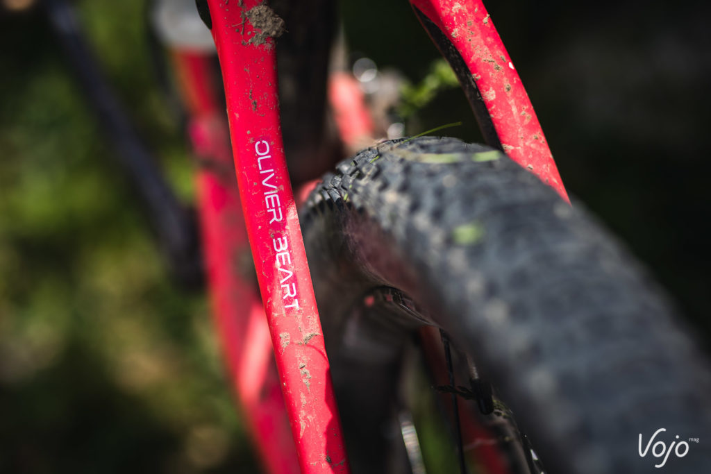 Bon, on vous avoue ne jamais avoir été gêné par le placement classique d’un porte-bidon, ni par un déséquilibre de répartition des masses gauche/droite sur d’autres vélos, mais on constate surtout ici que cela permet de placer le porte-bidon très bas (bénéfique pour abaisser le centre de gravité) et de le rendre vraiment très accessible à la main gauche. Ce qui est par contre vraiment très perceptible et agréable au quotidien avec ce vélo.
