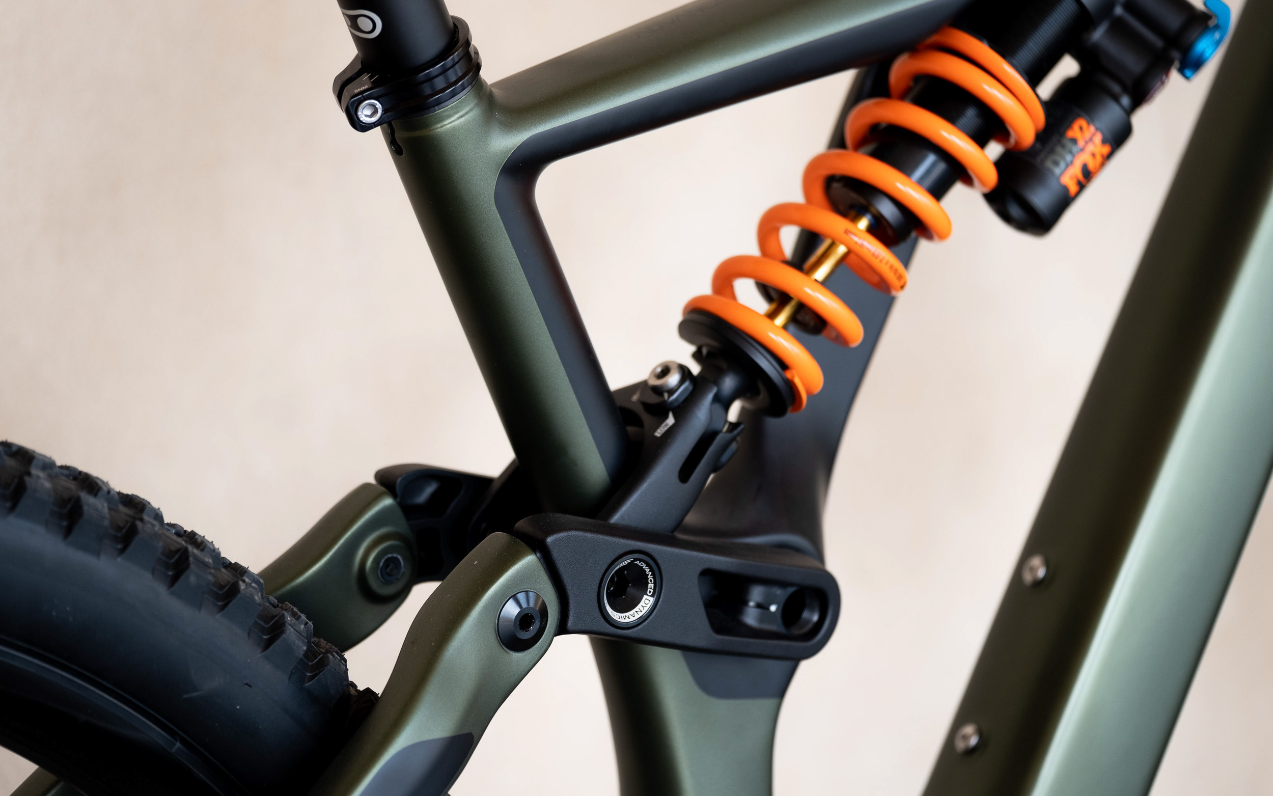 Ce repositionnement du Rallon, Orbea l’a fait de manière à la fois simple et subtile : en changeant la biellette ! Le châssis reste inchangé, mais en jouant sur cette « simple » petite pièce, il est possible de modifier non seulement le débattement, mais aussi le comportement de la suspension et le « feeling » qu’elle va procurer au pilote.