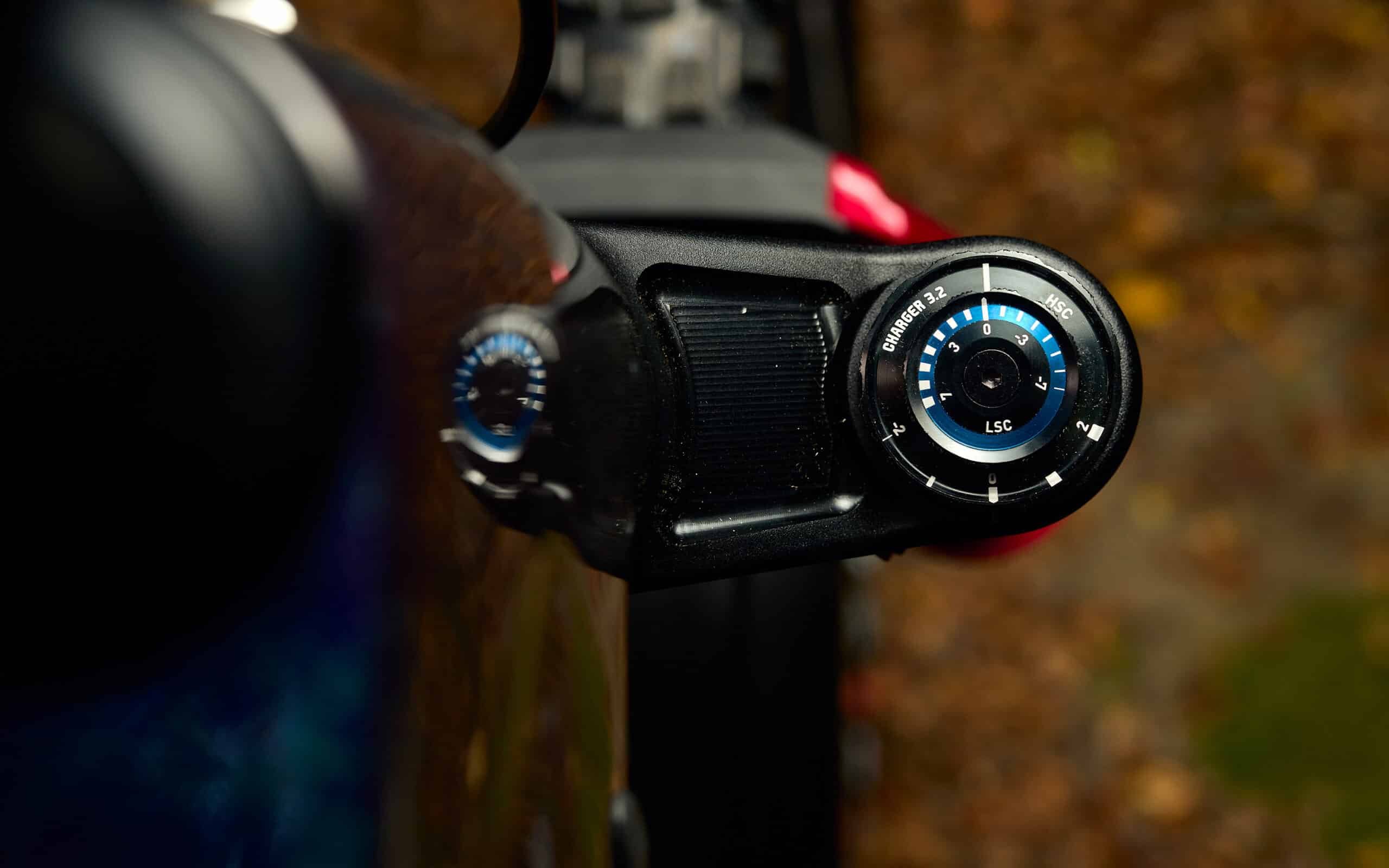 On retrouve toujours des réglages indépendants des compressions haute et basse vitesse, mais avec une plage d’utilisation annoncée plus cohérente et plus facile à exploiter. Cela passe notamment par l’introduction d’une position “0” centrale, à partir de laquelle il est désormais possible d’ajuster le réglage aussi bien en négatif qu’en positif, sur cinq clics de chaque côté. Une évolution qui tranche avec l’ancien fonctionnement, où l’on partait d’une position fermée pour simplement ouvrir davantage.