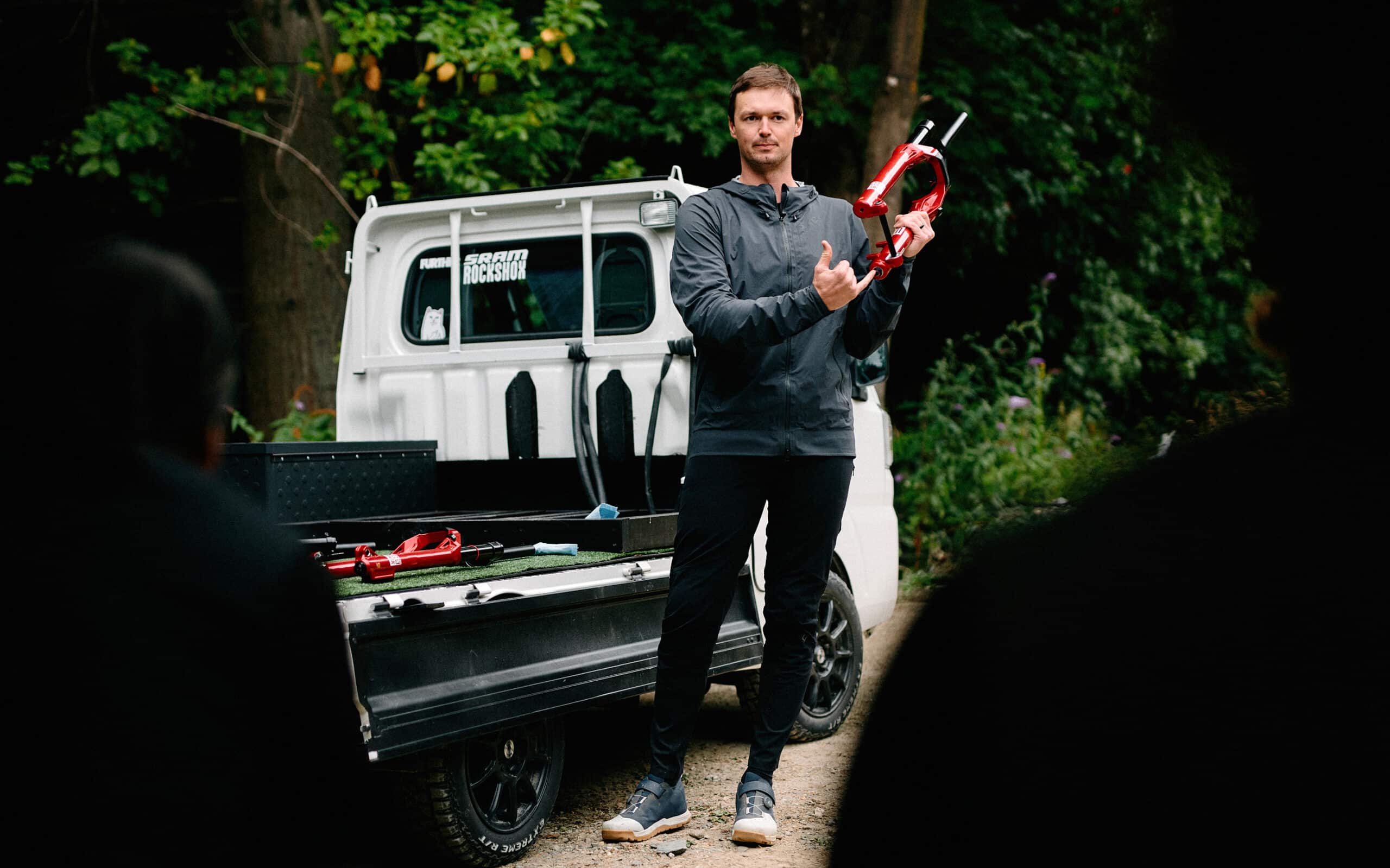 Mais cette évolution ne concerne pas uniquement ces deux modèles. Elle s’inscrit dans une refonte plus globale de la gamme : en all-mountain, le duo Lyrik / SuperDeluxe évolue lui aussi, tout comme le combo Boxxer / Vivid Coil en descente. On vous en parlait il y a quelques semaines, et cela laissait déjà présager l’arrivée de ces nouveautés sur le reste de la gamme. Car c’est bien du côté de la DH que tout a commencé : les technologies que l’on découvre aujourd’hui sont directement issues du développement mené en coupe du monde, avant d’être adaptées aux pratiques enduro et all-mountain.