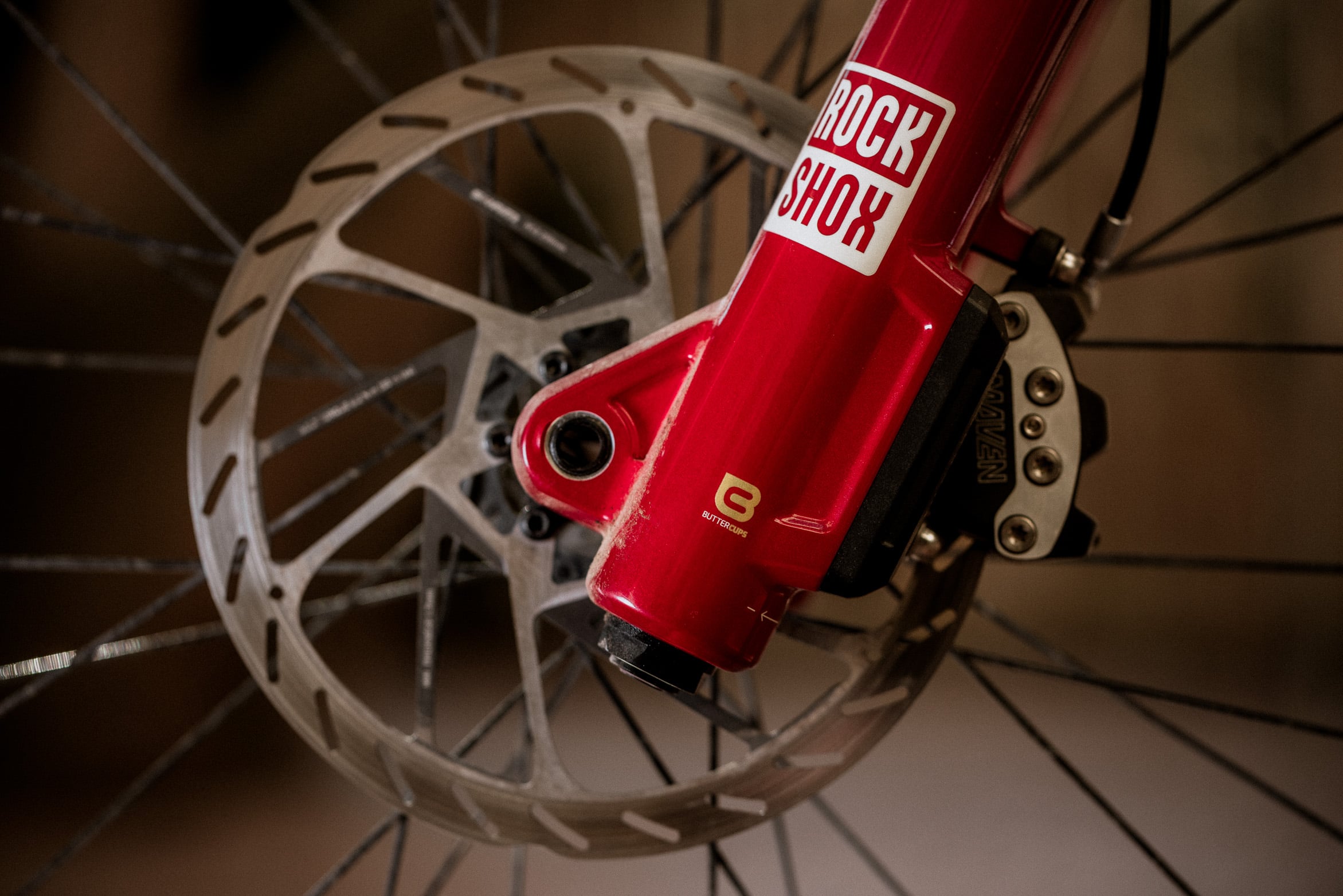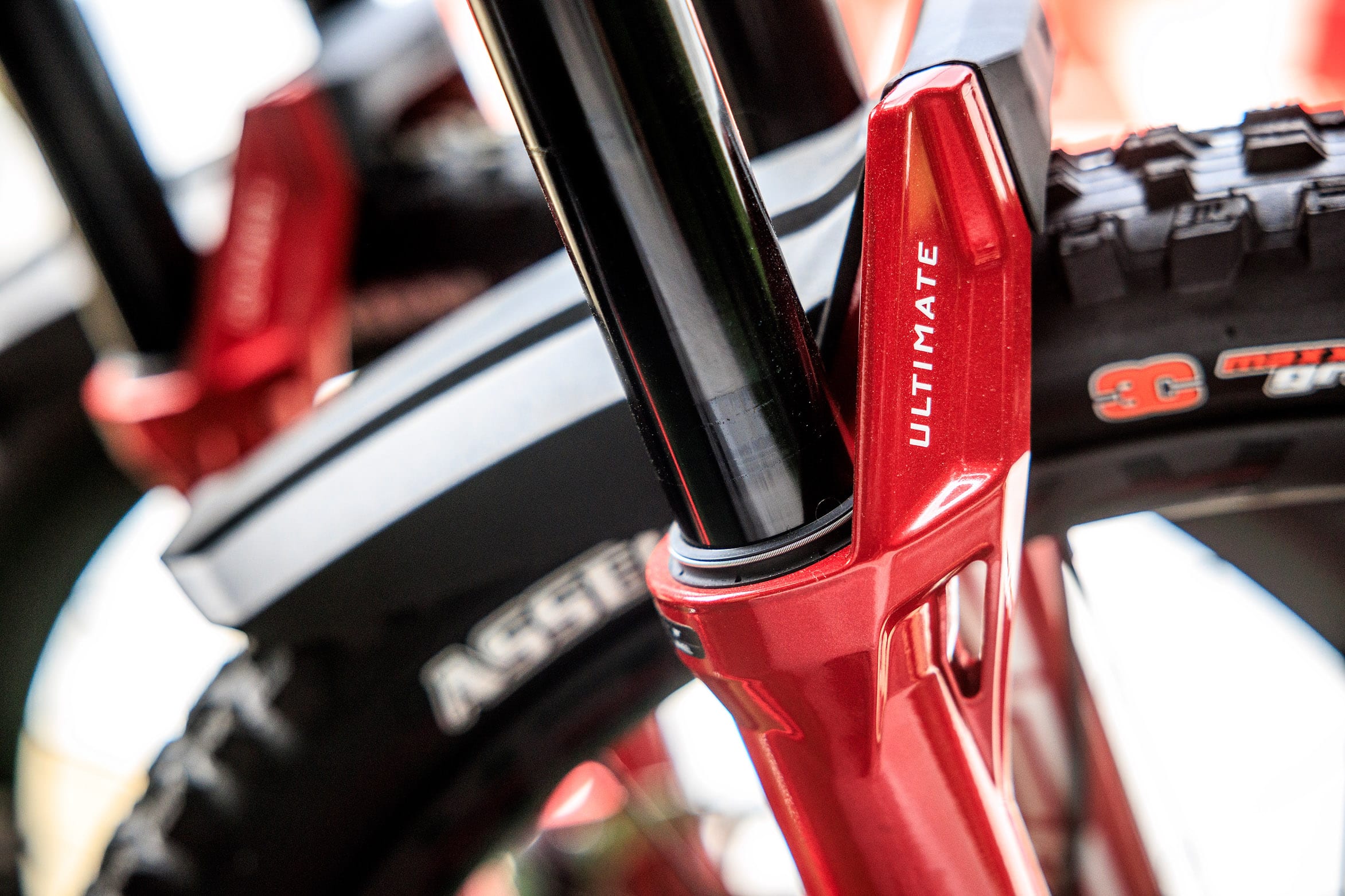 Toujours présents, les fameux ButterCups de chez RockSox sont annoncés comme permettant de « filtrer jusqu’à 20 % des vibrations haute fréquence, ce qui joue directement sur la fatigue du pilote », explique la marque. Ces petits silentblocs placés tout en bas de la fourche, à la liaison entre la tige du piston et les fourreaux, sont uniquement présents sur les versions Ultimate.