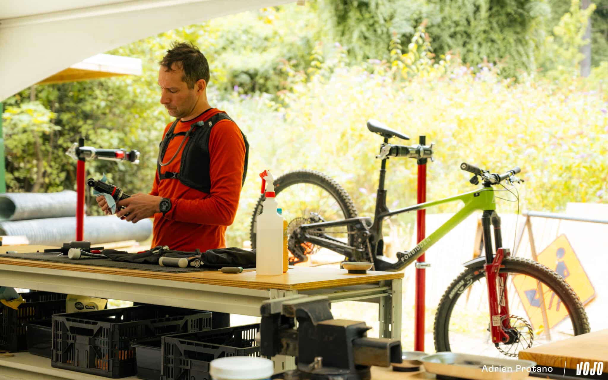 Nous avons ensuite rejoint les équipes de chez RockShox pour découvrir ces nouveautés en leur compagnie, mais surtout pour les tester dans les meilleures conditions possibles. L’idée était simple : comparer directement les deux générations, sur le même vélo, la même piste, et dans la même journée, afin de conserver des conditions aussi proches que possible.
