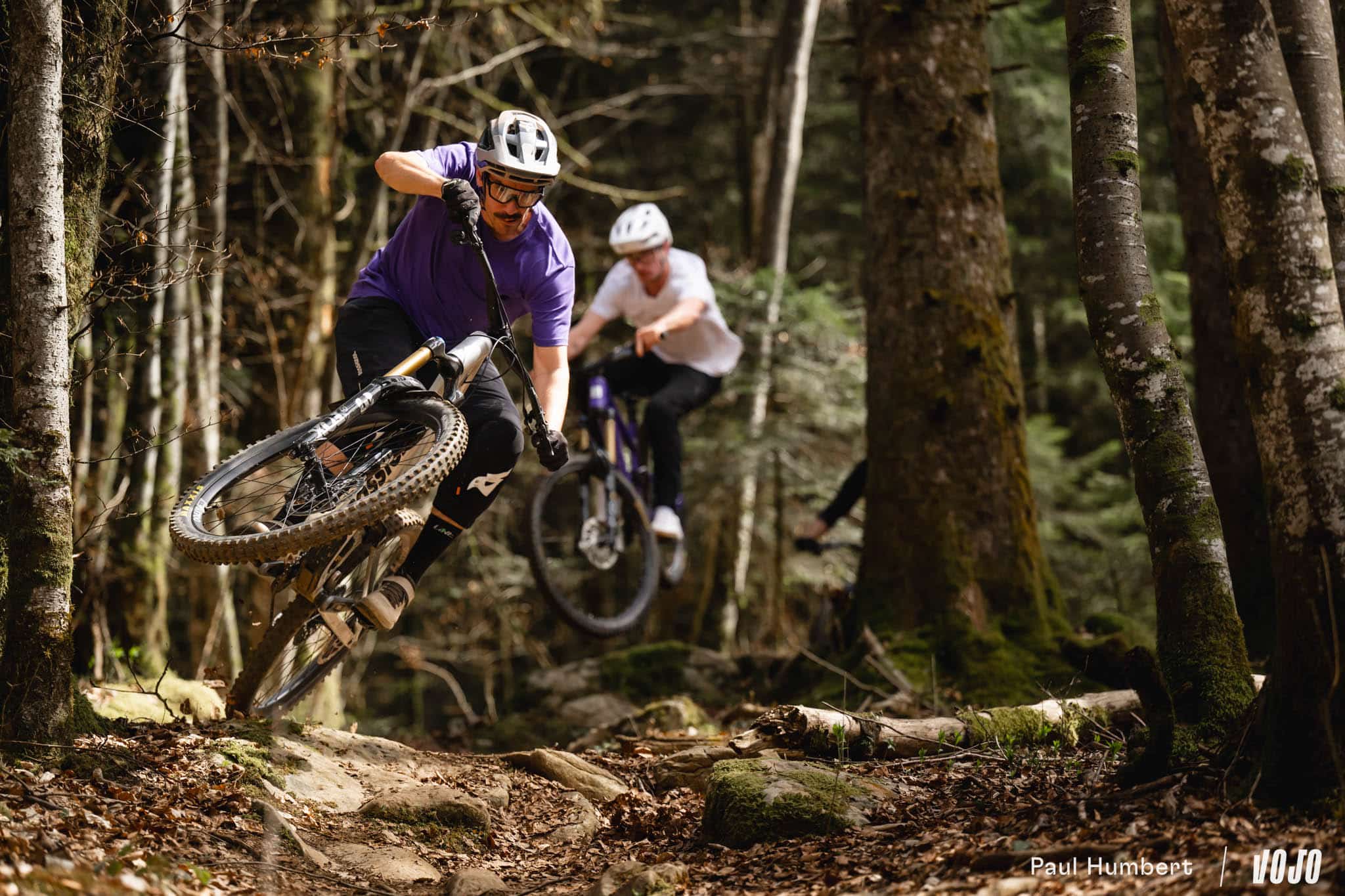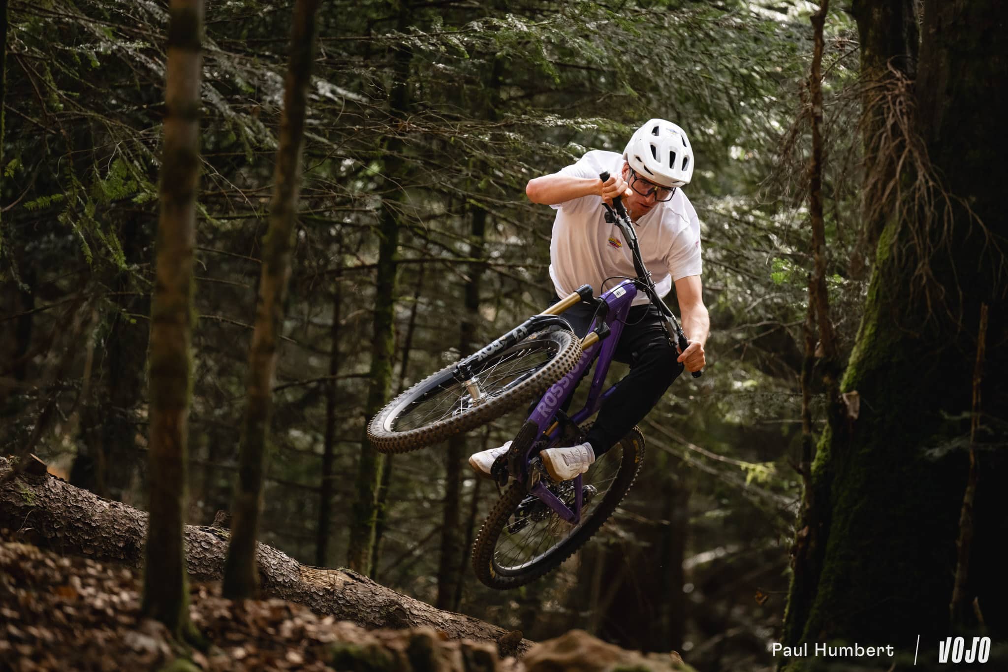On se surprend à pousser encore plus fort dans les jambes pour aller chercher le fond du débattement. On ne vient pas « toucher le fond » si facilement et le vélo continue d’aller vite. C’est assez agréable de découvrir un vélo qui peut rouler tranquillement, mais qui se révèle une fois qu’on prend de la vitesse. La lecture de terrain est très bonne et on prend pas mal de plaisir à aller chercher de nouvelles lignes. Peut-être moins à « tirer » dans tous les sens.