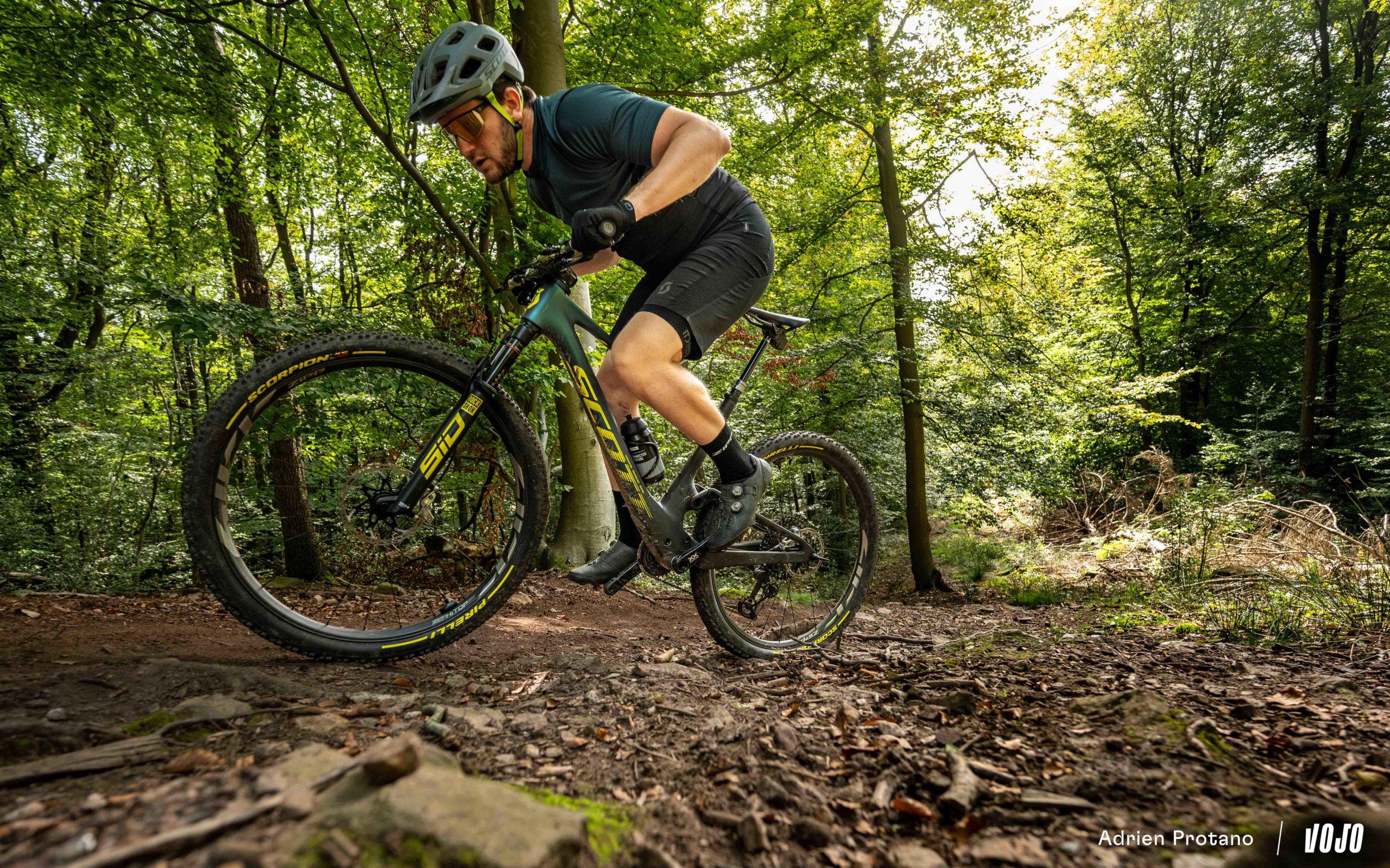 Nous avons monté notre paire de roues Zipp 1Zero HiTop S sur notre Scott Spark RC qui sert régulièrement de base de référence pour les composants. Un XC 120mm parfaitement contemporain et très à l’aise en descente, voilà qui semble coller au programme de ces nouvelles Zipp. Pour que votre information soit complète, sachez qu’elles ont succédé aux roues Erase/Duke, aux Reserve 28XC et à des TopWheels custom à 1kg avec rayons Berd (test à venir bientôt). Nous avons donc quelques points de comparaison sur cette plateforme. Nous avons également monté des pneus Pirelli Scorpion XC RC en 2.4″ de section, en accord avec le terrain sec de la majorité de cet essai.