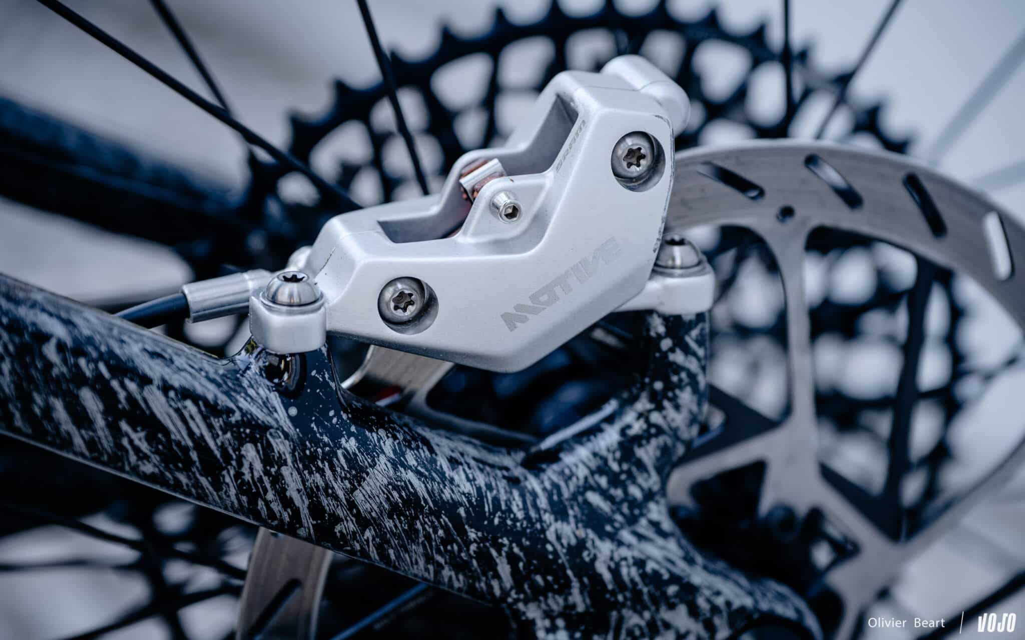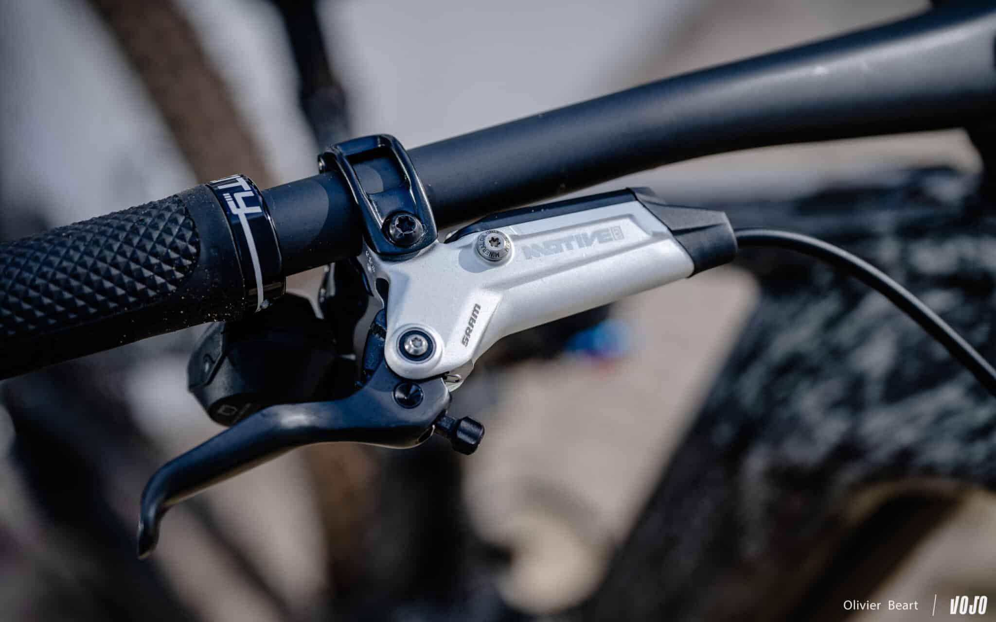 Du côté des freins, exit les Maven, place aux Sram Motive. Utilisés en XC, ils disposent néanmoins d’étriers 4 pistons et notre test a montré qu’ils sont tout à fait à leur place sur ce genre de machine, tant au niveau de la puissance brute que de l’endurance, surtout avec des disques en 200mm de diamètre.