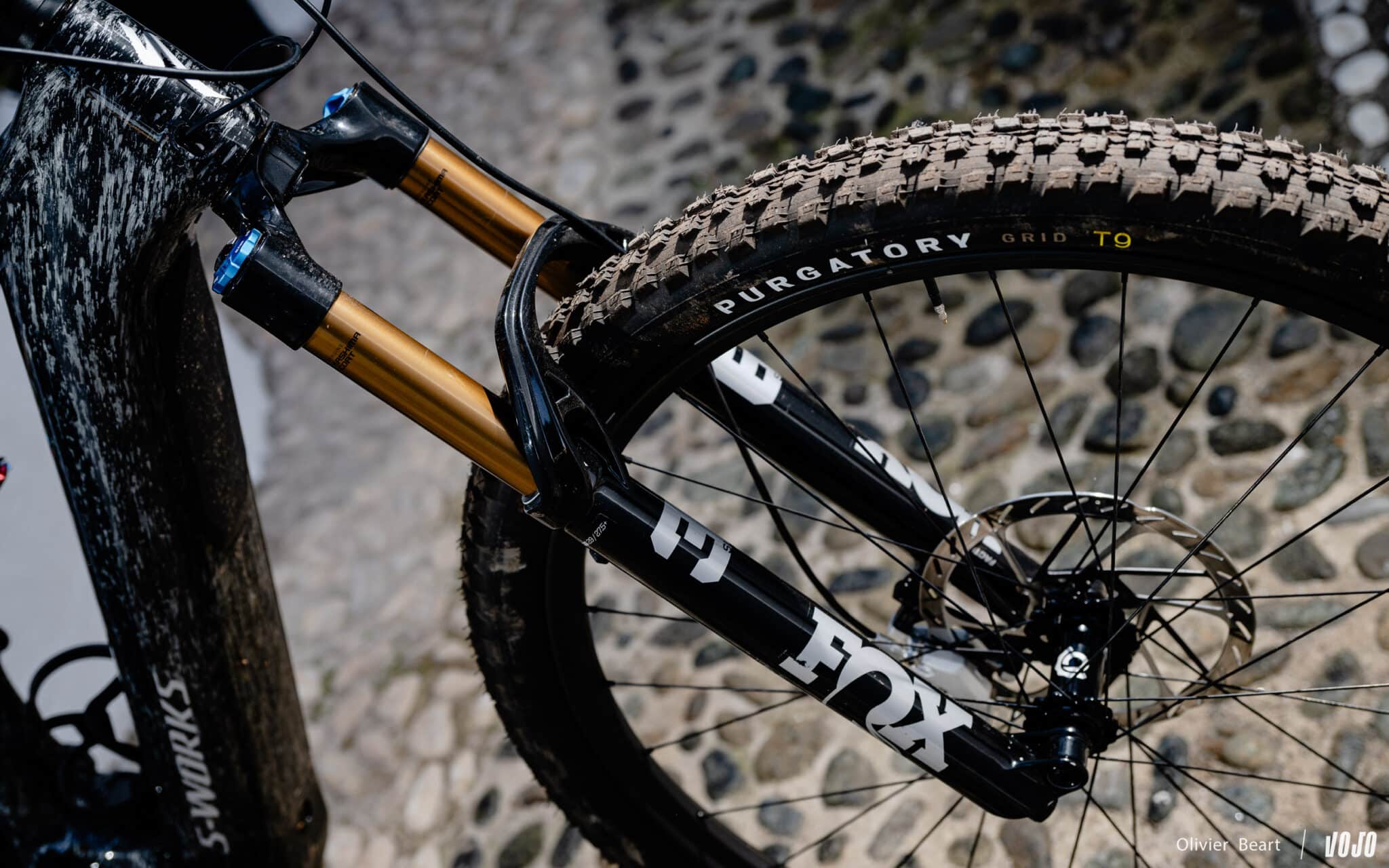 L’amortisseur Fox Génie développé par Specialized est par contre toujours présent à l’arrière, mais dans une version revue pour le Levo R et son débattement réduit. Pour rappel, il est apparu sur le Specialized Stumpjumper et il est aussi présent sur le Levo. Cet amortisseur pour particularité de disposer de deux chambres d’air et il a été pensé par Specialized pour essayer de procurer les avantages du ressort hélicoïdal et d’un amortisseur à air. Pour plus d’infos, rendez-vous ici : Specialized Stumpjumper : quels réglages choisir ? Les recommandations de Vojo.