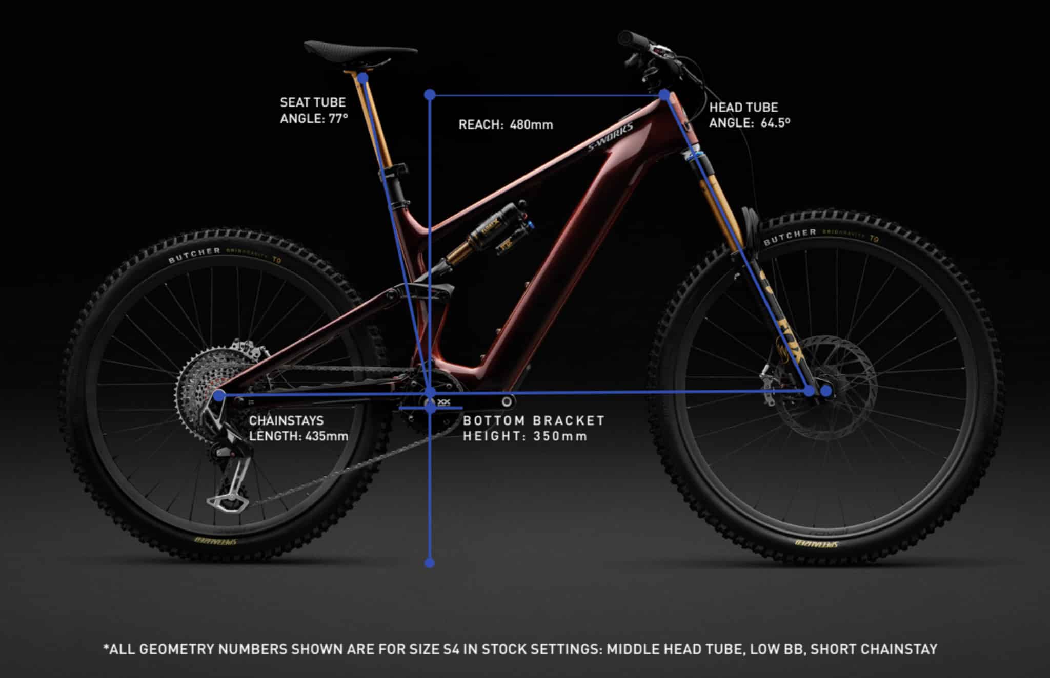 Logiquement, la géométrie change par rapport au Levo, mais c’est au final assez minime (Levo R sur la première image, Levo sur la seconde) : 65° d’angle de direction (+0,5°) et boîtier plus haut (+11 mm) sont les principales différences, mais pour le reste ils sont très proches voire identiques (reach, longueur de bases, angle de tube de selle).