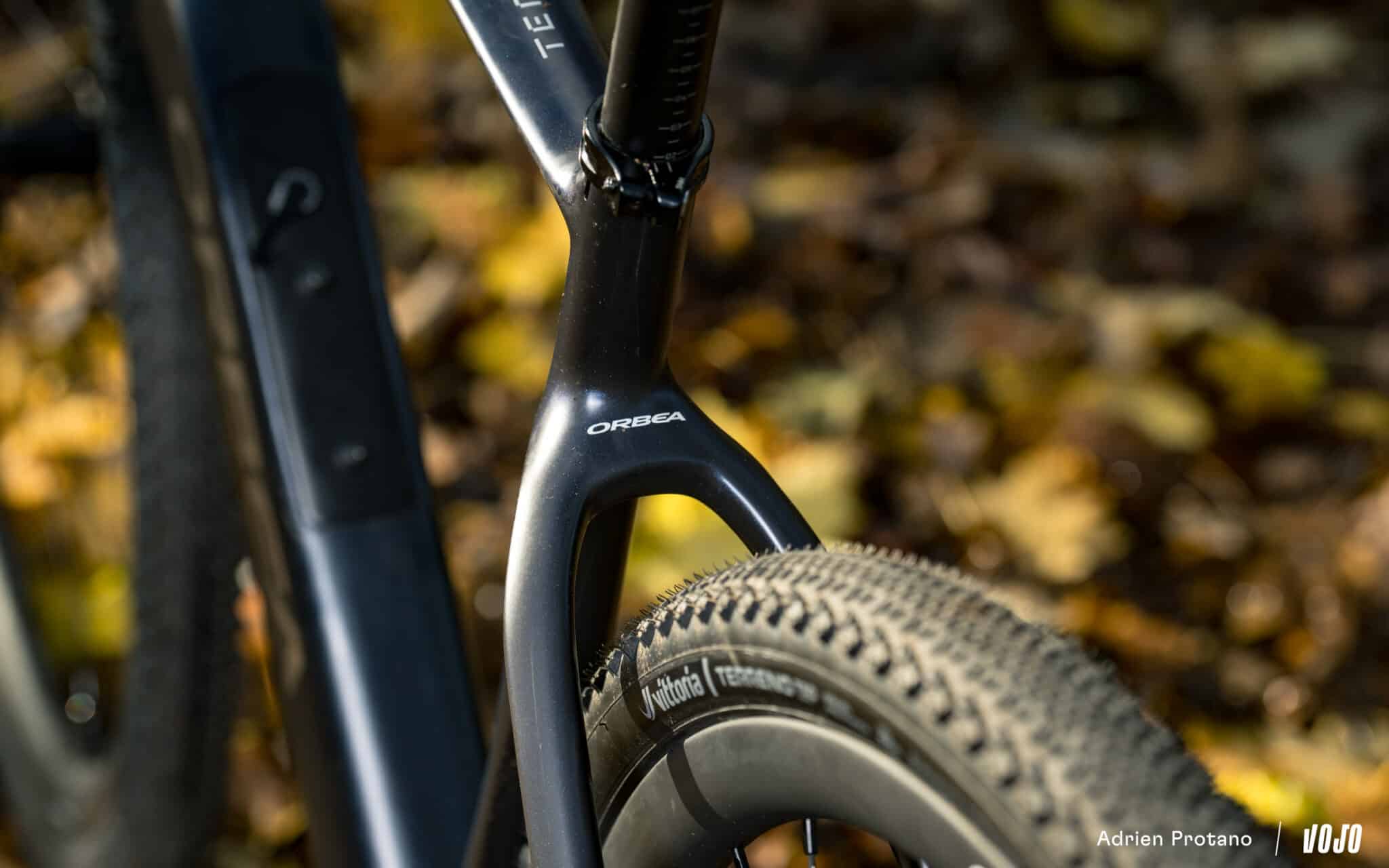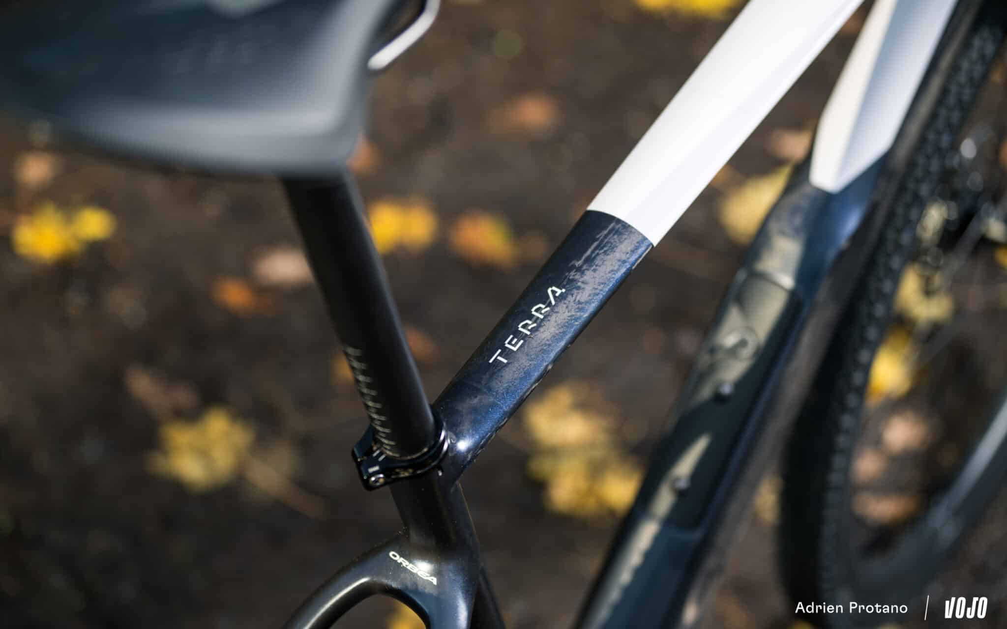Contrairement au Terra Race qui utilise les fibres OMX, les plus légères et performantes proposées par Orbea, le Terra utilise pour sa part du carbone OMX, un peu plus lourd, mais qui permet aussi et surtout de concevoir un cadre plus tolérant et avec une meilleure capacité de filtration des vibrations.
