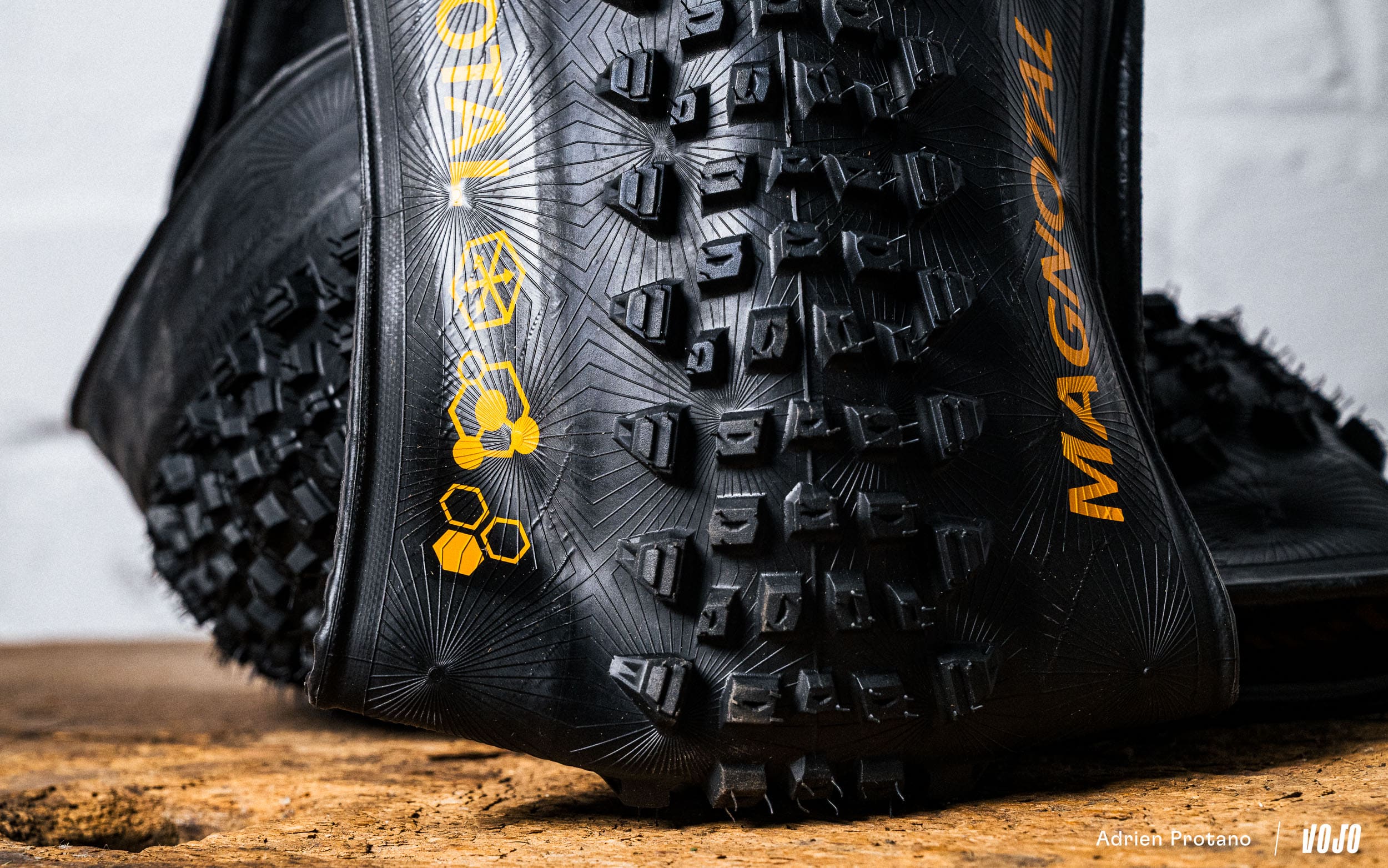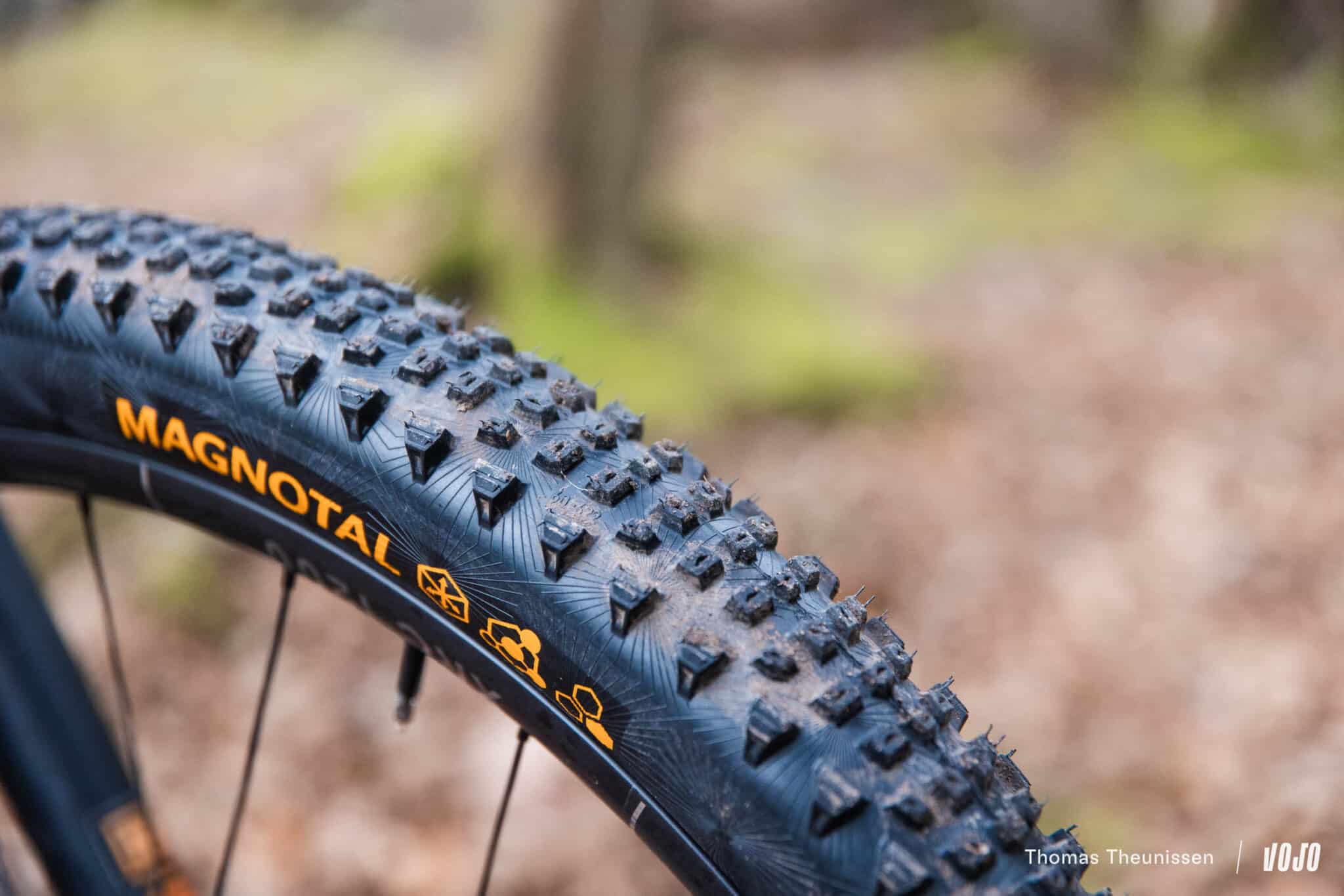 Pour le Magnotal, c’est une tout autre philosophie. L’objectif est d’avoir un profil polyvalent, avec de l’accroche latérale mais une bande de roulement qui préserve un bon rendement. C’est un modèle que l’on placerait en face d’un Schwalbe Wicked Will par exemple, qu’on retrouve sur bon nombre de vélos orientés trail et/ou sur des e-bikes légers.