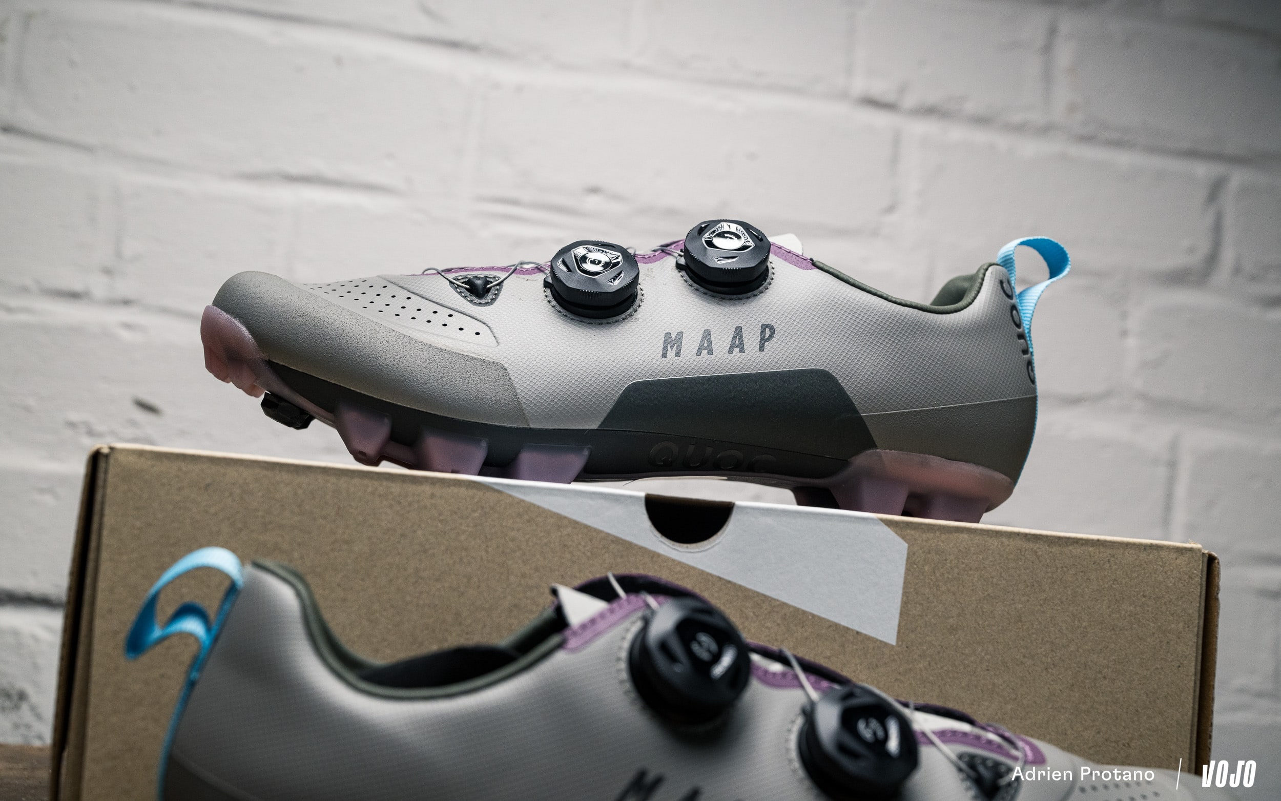 Avec cette collaboration Quoc x Maap, deux marques au fort ADN esthétique s’attaquent à un segment exigeant : la chaussure tout-terrain capable d’encaisser de très longues journées en selle, tout en promettant confort et performance. Derrière le coloris exclusif et les détails spécifiques à Maap se cache surtout une base technique déjà éprouvée chez Quoc. Nous avons pris le temps de rouler avec ces chaussures dans des conditions variées pour voir si le fond est à la hauteur de la forme. Réponse :