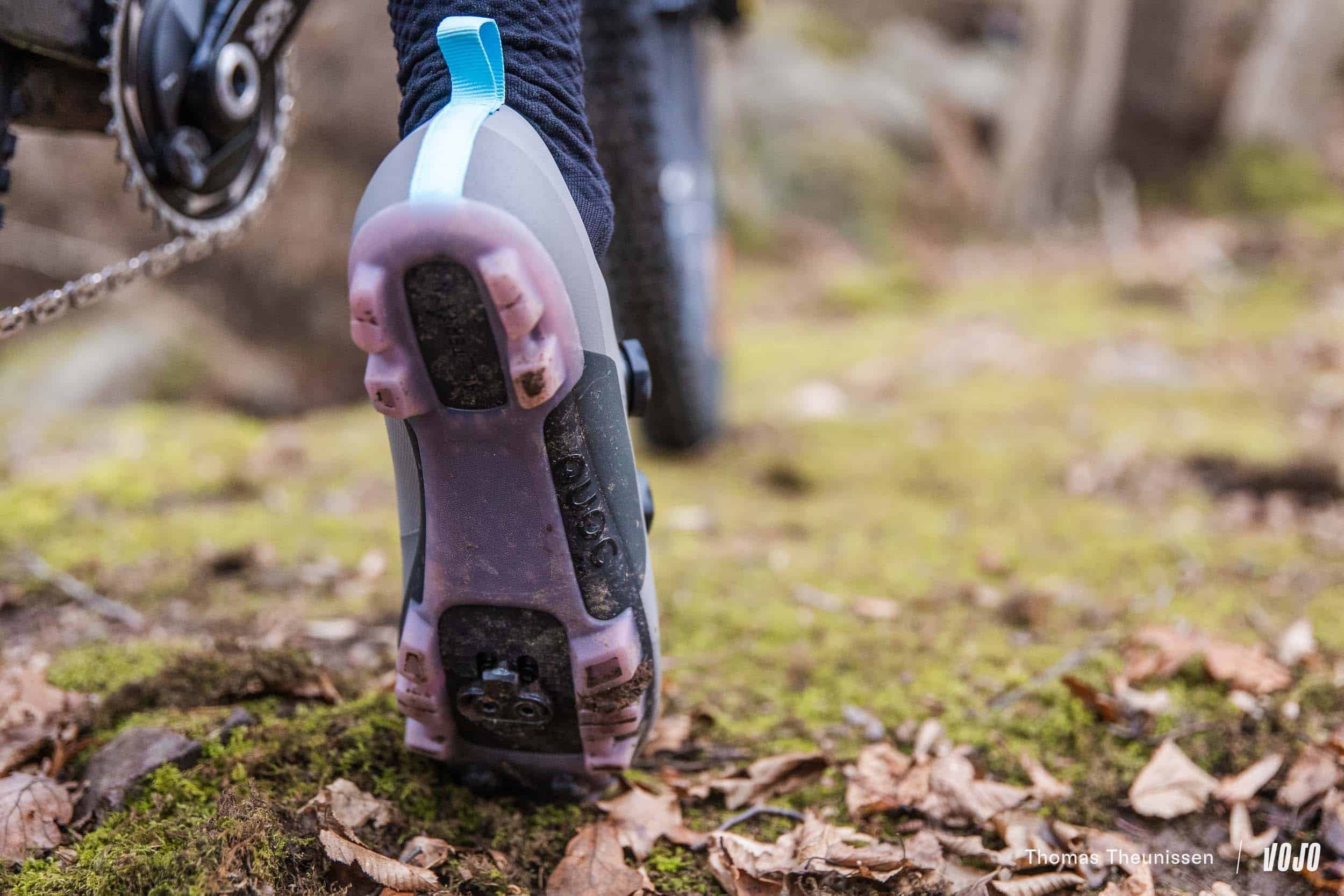 En dehors du vélo, la semelle offre un grip efficace, sans excès. On peut marcher, pousser le vélo ou grimper des pentes sans se sentir totalement handicapé, notamment grâce aux inserts en caoutchouc, et ce même si la rigidité reste bien présente.