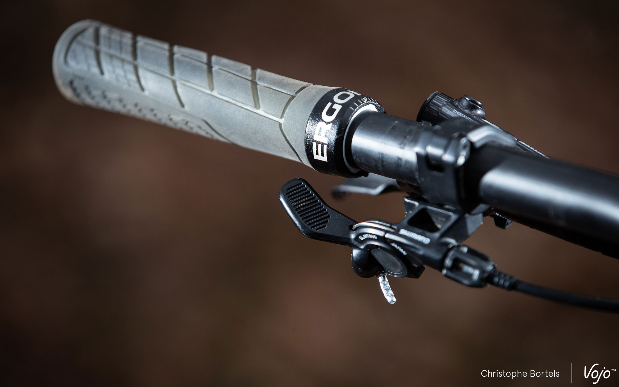 La commande XTR ne nous a pas totalement convaincus non plus. Sa qualité de fabrication et sa finition sont pourtant irréprochables et son montage sur roulement présageait d’une bonne souplesse sous le pouce. Hélas, c’est surtout une sensation de dureté qu’on retrouve, la faute à sa taille très compacte qui donne un bras de levier particulièrement court, imposant un gros effort au niveau du pouce pour l’actionner. Ce sentiment est renforcé par la présence d’un petit ressort qui ramène le levier dans sa position initiale. Ce ressort n’est pourtant pas nécessaire puisque le mécanisme au bas de la tige de selle “tire” déjà sur le câble une fois la commande relâchée. Et malgré la fixation I-Spec EV sur le levier de frein – qui permet une bonne latitude de réglage tant en hauteur que latéralement -, nous ne sommes jamais vraiment arrivés à positionner la commande pour qu’elle tombe sous le pouce comme on le souhaitait. En cause, un levier trop proche du cintre par rapport à un shifter Shimano par exemple, mais aussi à sa forme et à son orientation… Nous avons aussi eu l’occasion de tester brièvement la commande 1X, fournie avec certaines références. Résultat, plus de souplesse et une meilleure ergonomie, mais un manque de rigidité quand on actionne le levier. Pour l’instant, notre référence dans ce domaine reste la commande proposée par Wolf Tooth, compatible avec la plupart des tiges de selle à commande par câble du marché, dont la Koryak testée ici.