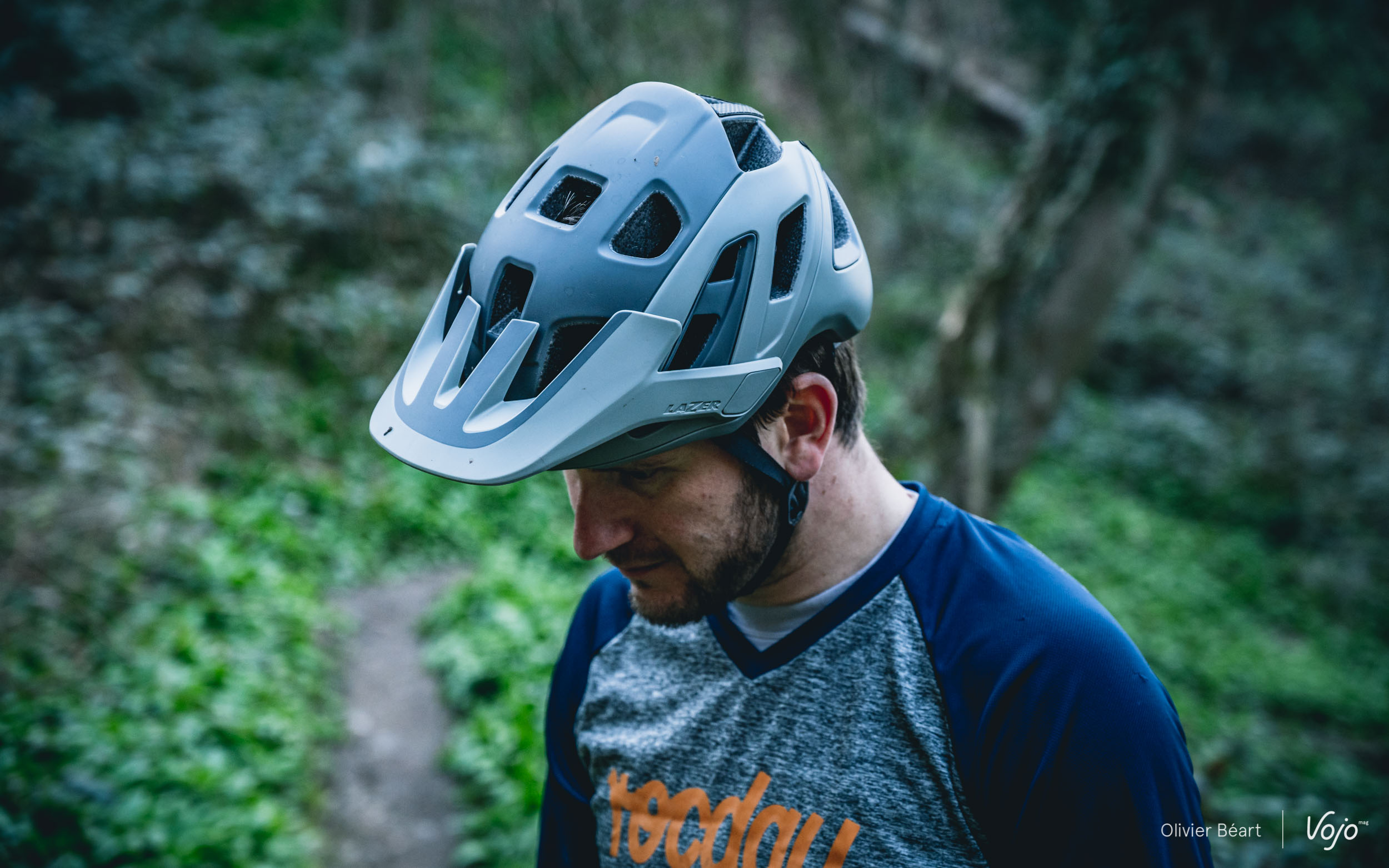Enfin, on termine le tour du propriétaire par la jugulaire, qui se ferme par une boucle magnétique, un choix de plus en plus courant sur les casques de VTT. Le modèle choisi par Lazer est aussi facile à ouvrir qu’à fermer et même s’il est un poil plus volumineux qu’un « clip » classique, il n’est jamais gênant. Il y a aussi moins de risque de se pincer un petit morceau de peau en le manipulant. Quant au réglage des sangles au niveau des oreilles, il est aussi très pratique et on peut positionner la boucle très près de ses lobes sans ressentir de sensation désagréable.
