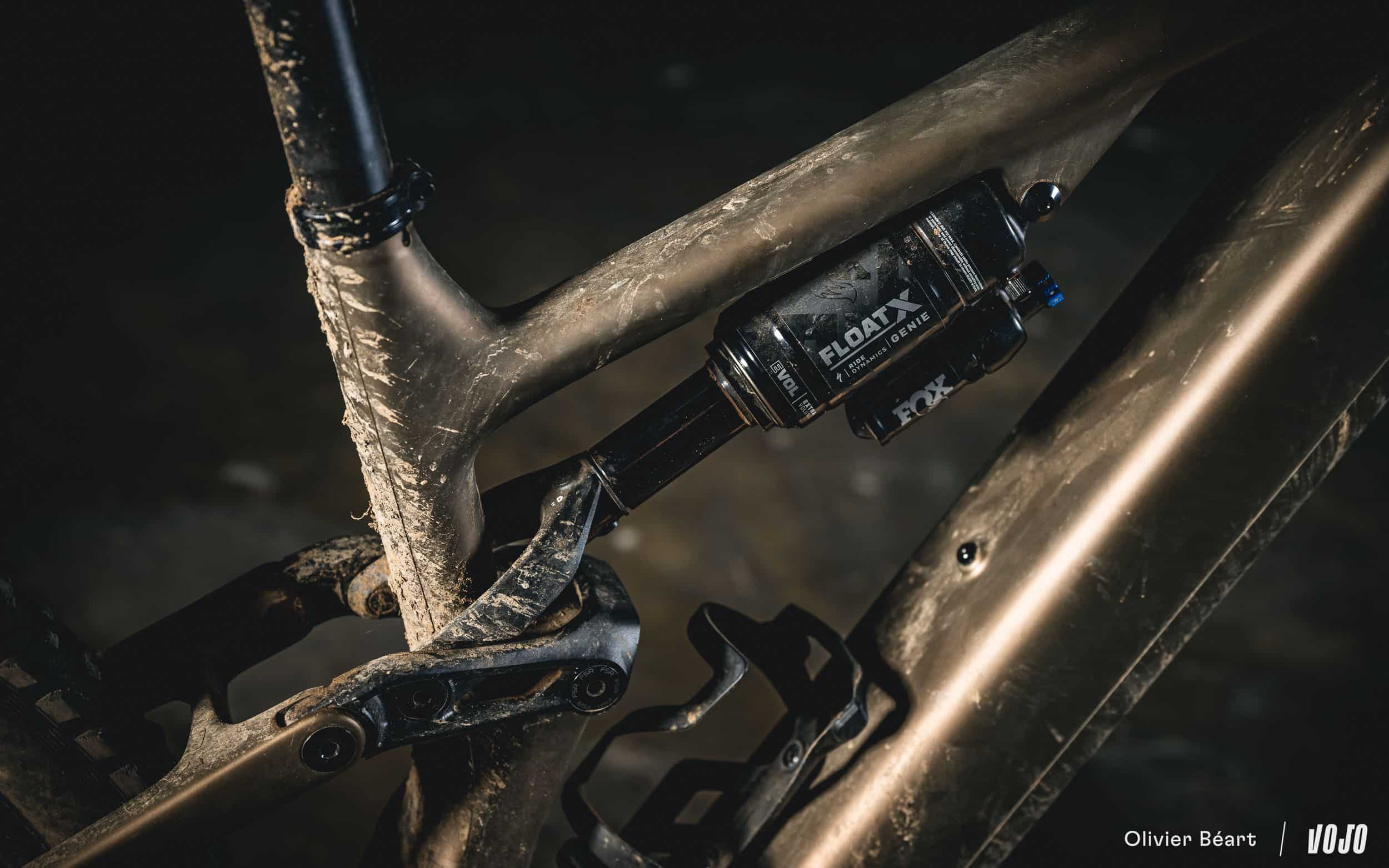 L’amortisseur Genie, hérité du dernier Stumpjumper, est également personnalisable grâce à des cales qu’on peut venir glisser à l’intérieur afin d’en modifier le comportement. Pour en savoir plus, rendez-vous ici : Specialized Stumpjumper : quels réglages choisir ? Les recommandations de Vojo. Sur le Levo, nous avons trouvé que le réglage d’origine offre un excellent comportement et nous ne l’avons pas modifié lors du test. On n’est pas loin de penser que la marque est allée un peu trop loin en la matière pour le commun des mortels et que peu d’utilisateurs se plongeront réellement dans ces réglages ultra fins de l’amortisseur.