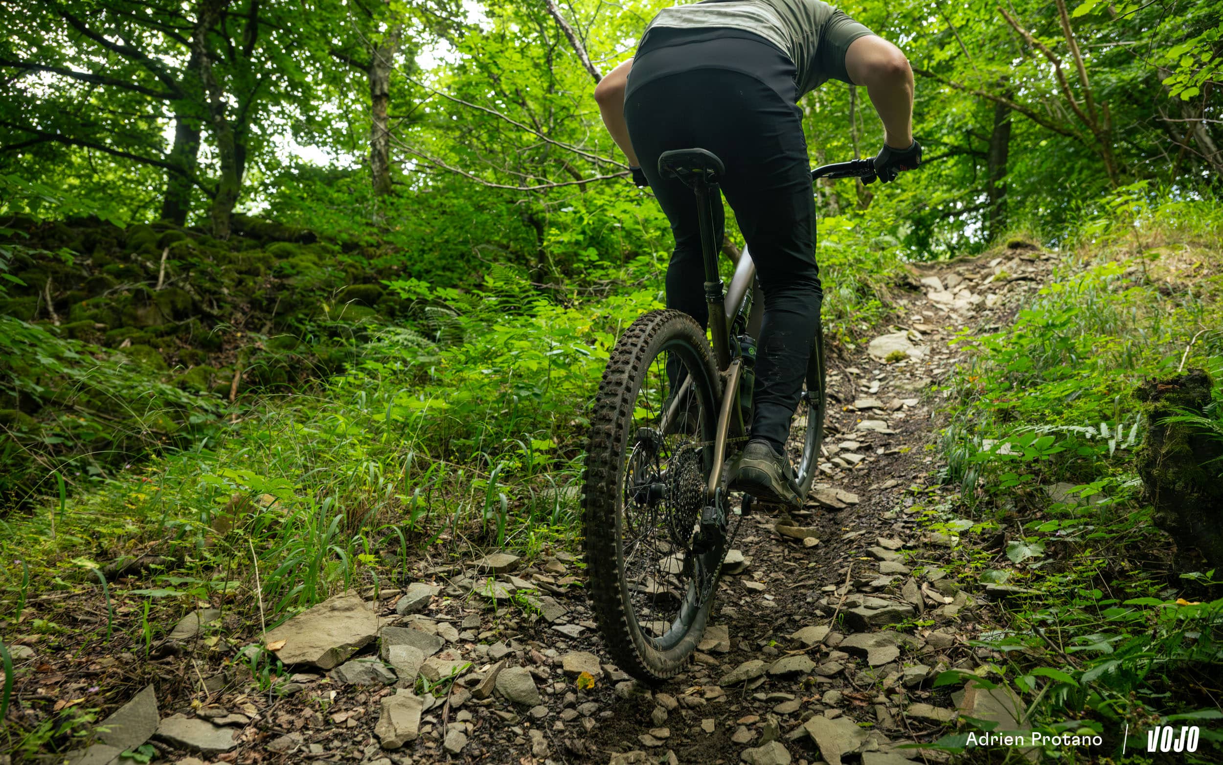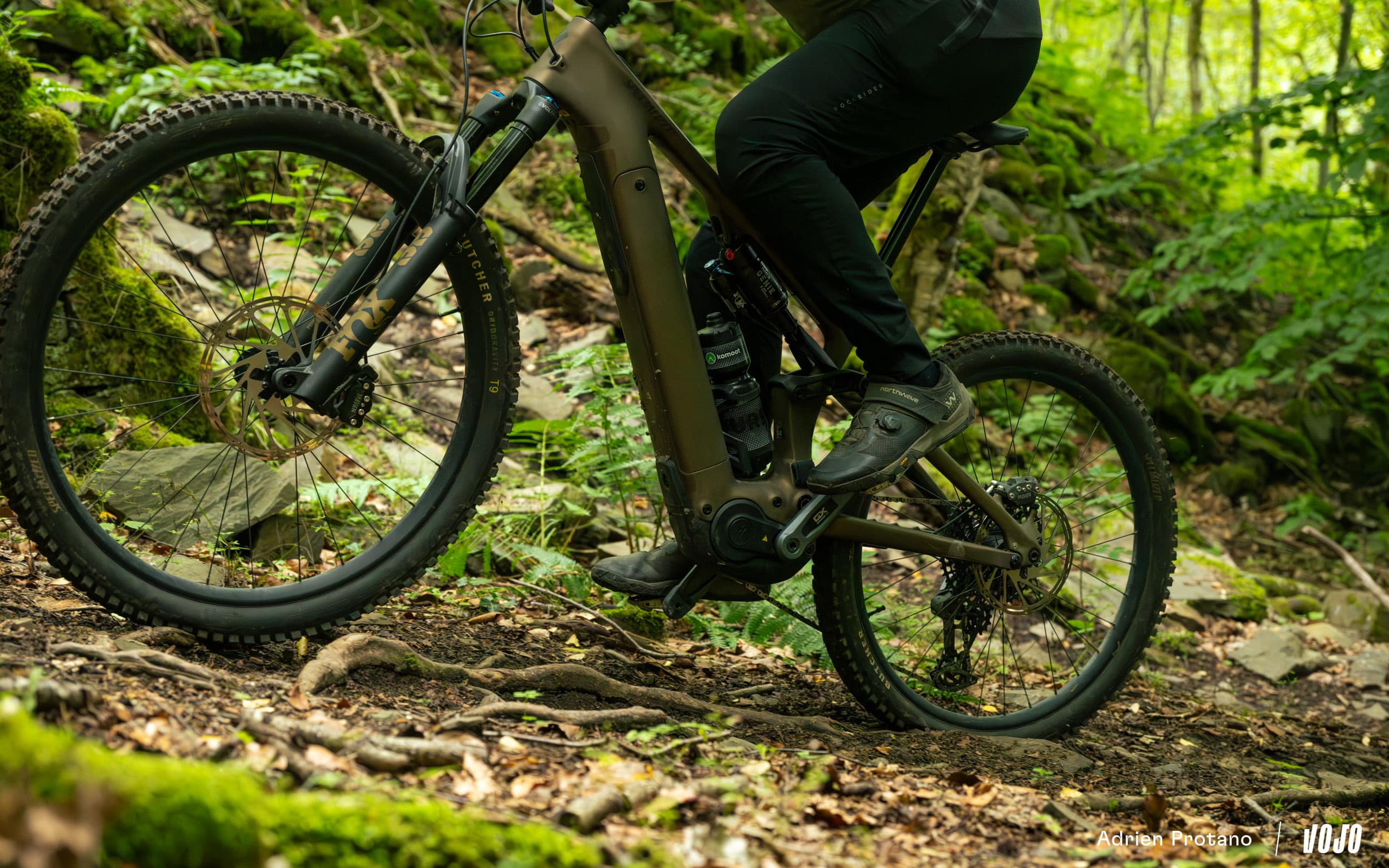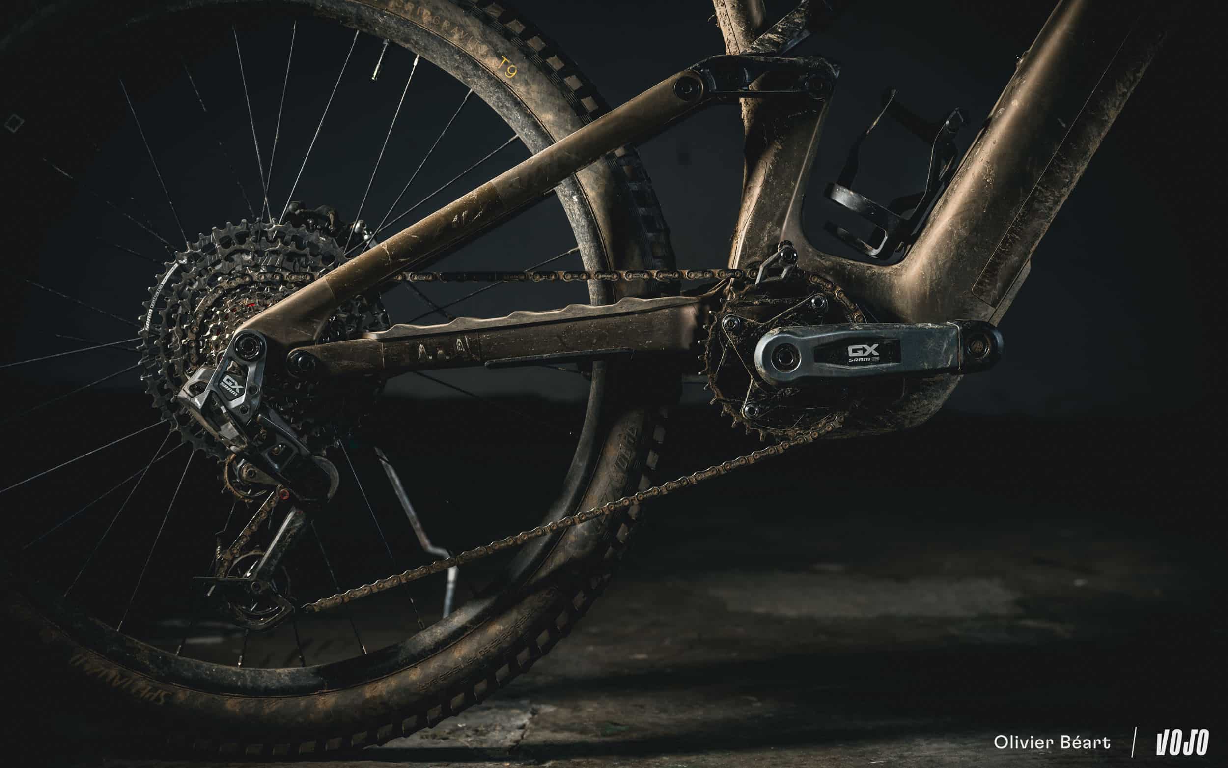 Pour ce qui est de la transmission, c’est le Sram GX AXS T-Type qui est en charge. Il procure des changements de rapports précis et il est tout à fait en mesure de supporter le couple et la puissance de l’assistance sans broncher. Un must, et seul le poids le différencie réellement des versions plus haut de gamme (XO et XX).