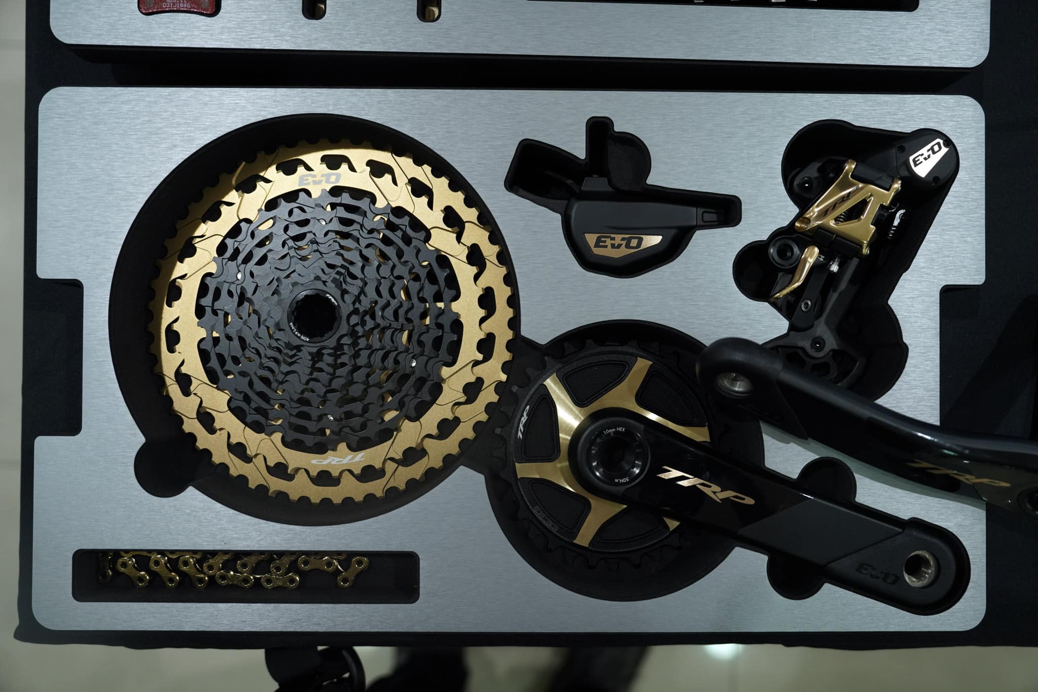 Disponible en deux couleurs, or/noir ou gris/noir, le TRP Evo 12 est véritablement un groupe complet, conçu et produit en interne, à l’exception de la chaîne (conçue et produite par KMC). Examinons ensemble chaque pièce plus en détail, avant de passer à notre essai.