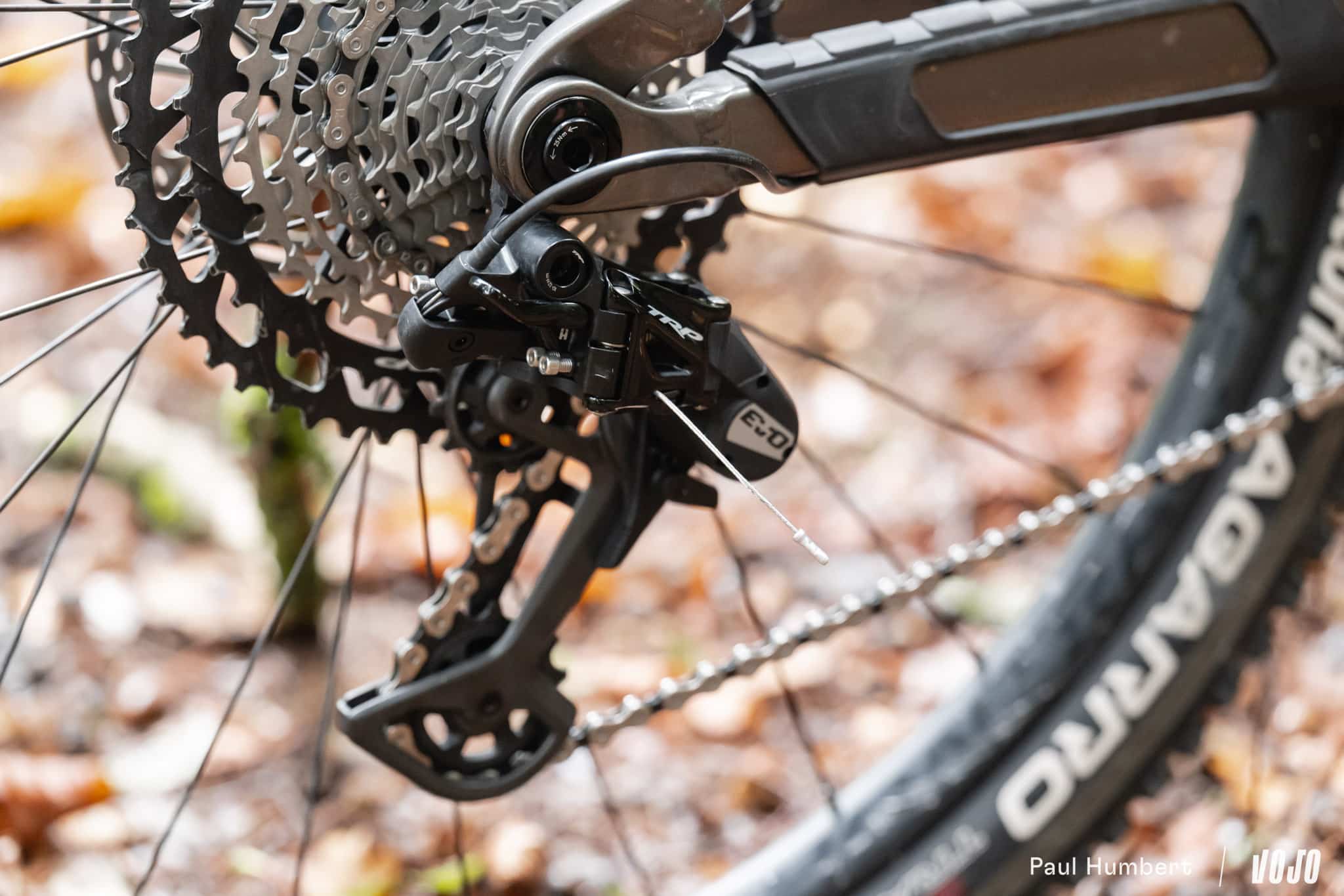Dernier point terrain concernant le dérailleur : si le système visant à faciliter la dépose de la roue arrière en libérant la tension de la chaîne ne nous a pas forcément convaincus, en raison de l’ergonomie du levier/goupille qui n’est pas des plus naturelles et aisées à utiliser, la fonction « Hall Lock », quant à elle, a bien démontré son efficacité, notamment pour réduire les bruits de claquement parasites.