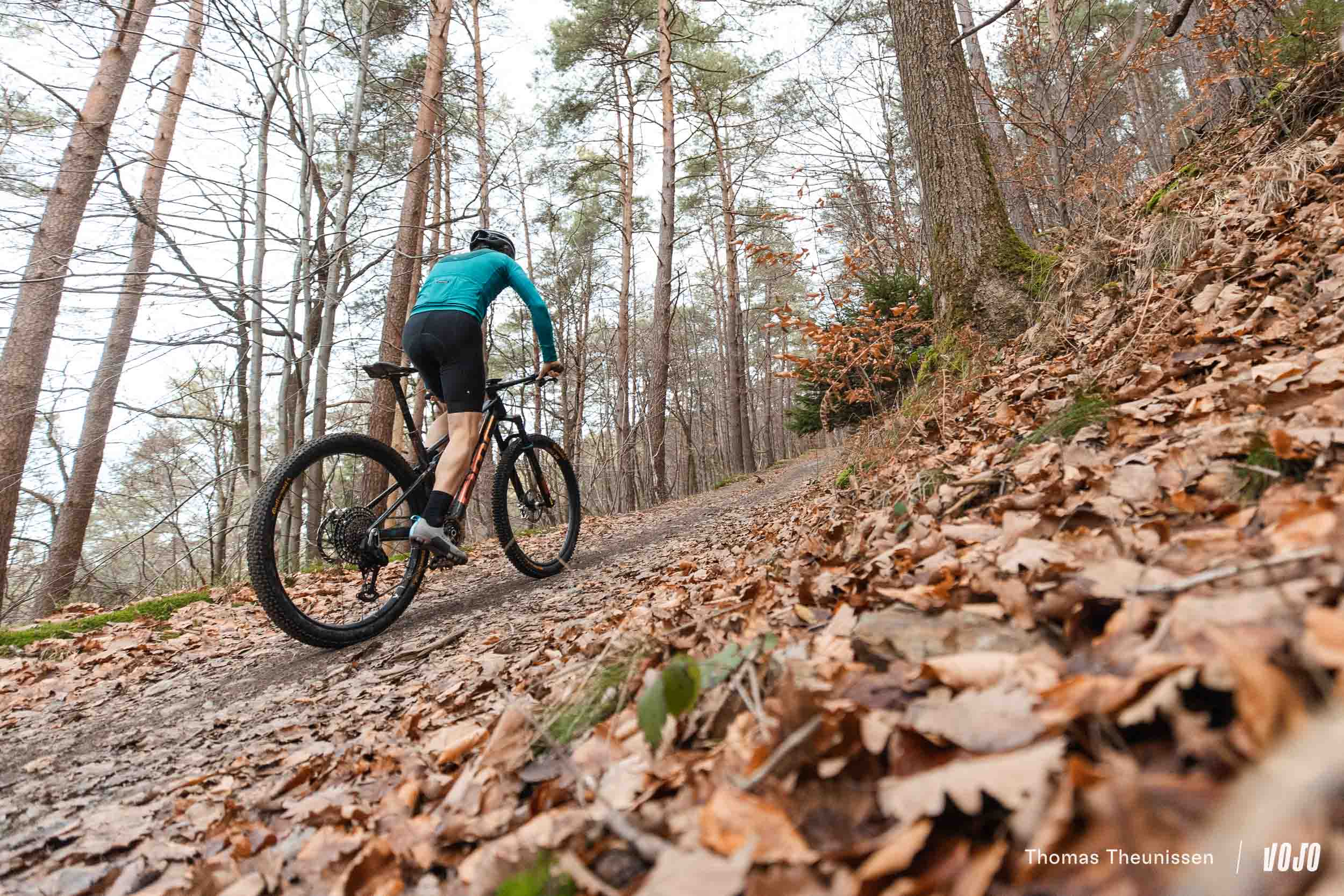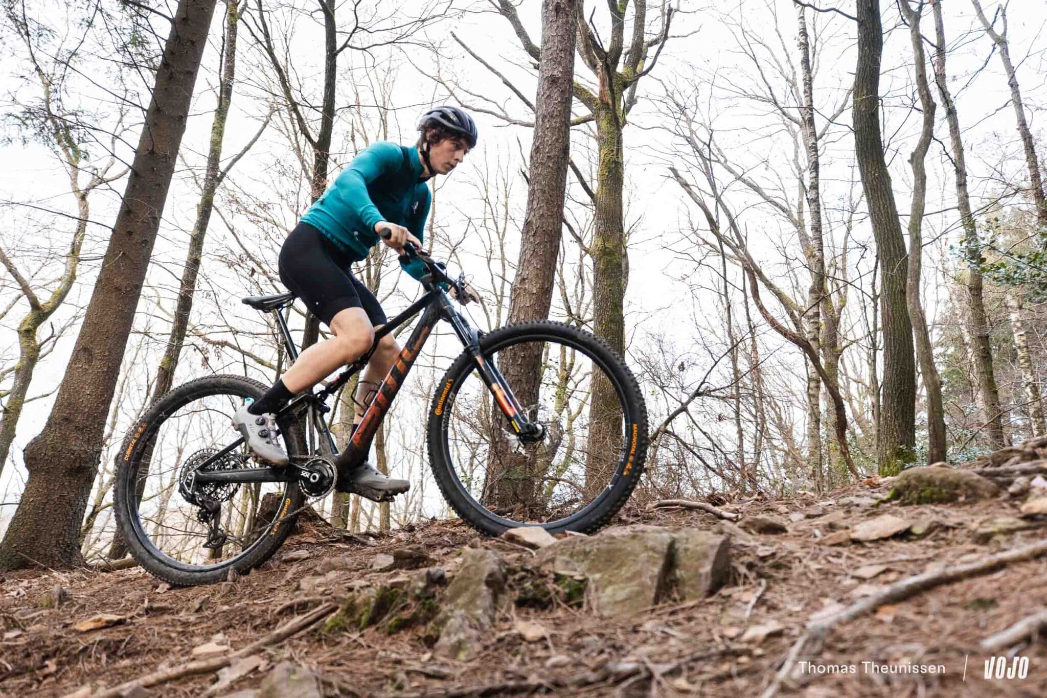 Autre point fort de cette cinématique : la traction en montée. La roue arrière colle au sol, même dans les passages délicats ou les franchissements techniques, ce qui permet de transférer la puissance de manière très efficace.