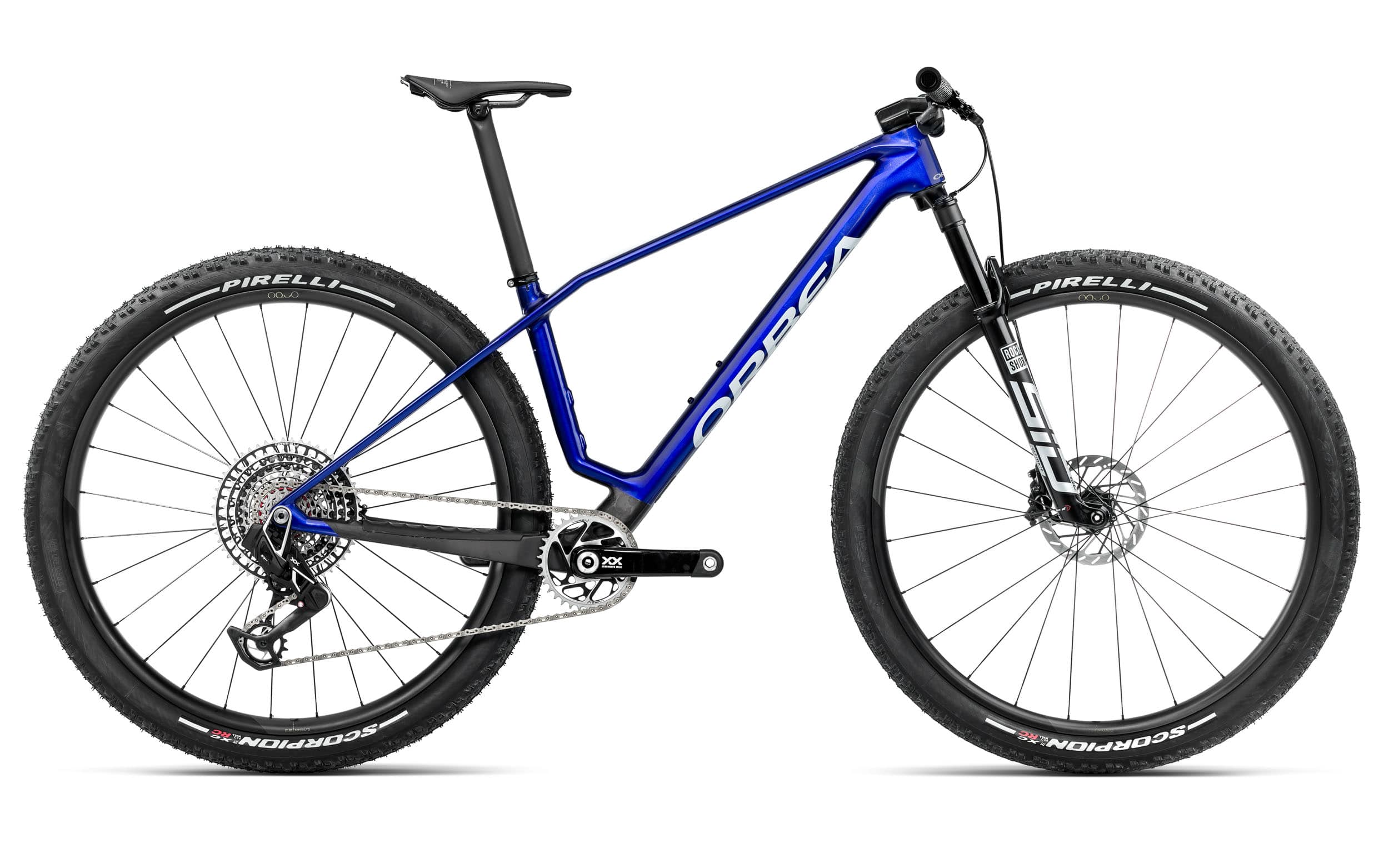 À 3999 €, l’Orbea Alma Pro (qui illustre notre article) est en fourche SID SL Select, transmission Sram GX AXS T-Type, freins Shimano MT 6100, roues Oquo alu MP28 Pro, tige de selle carbone fixe OC (dropper en option), cockpit carbone intégré OC MP10 et pneus Pirelli Scorpion XC RC 2.4