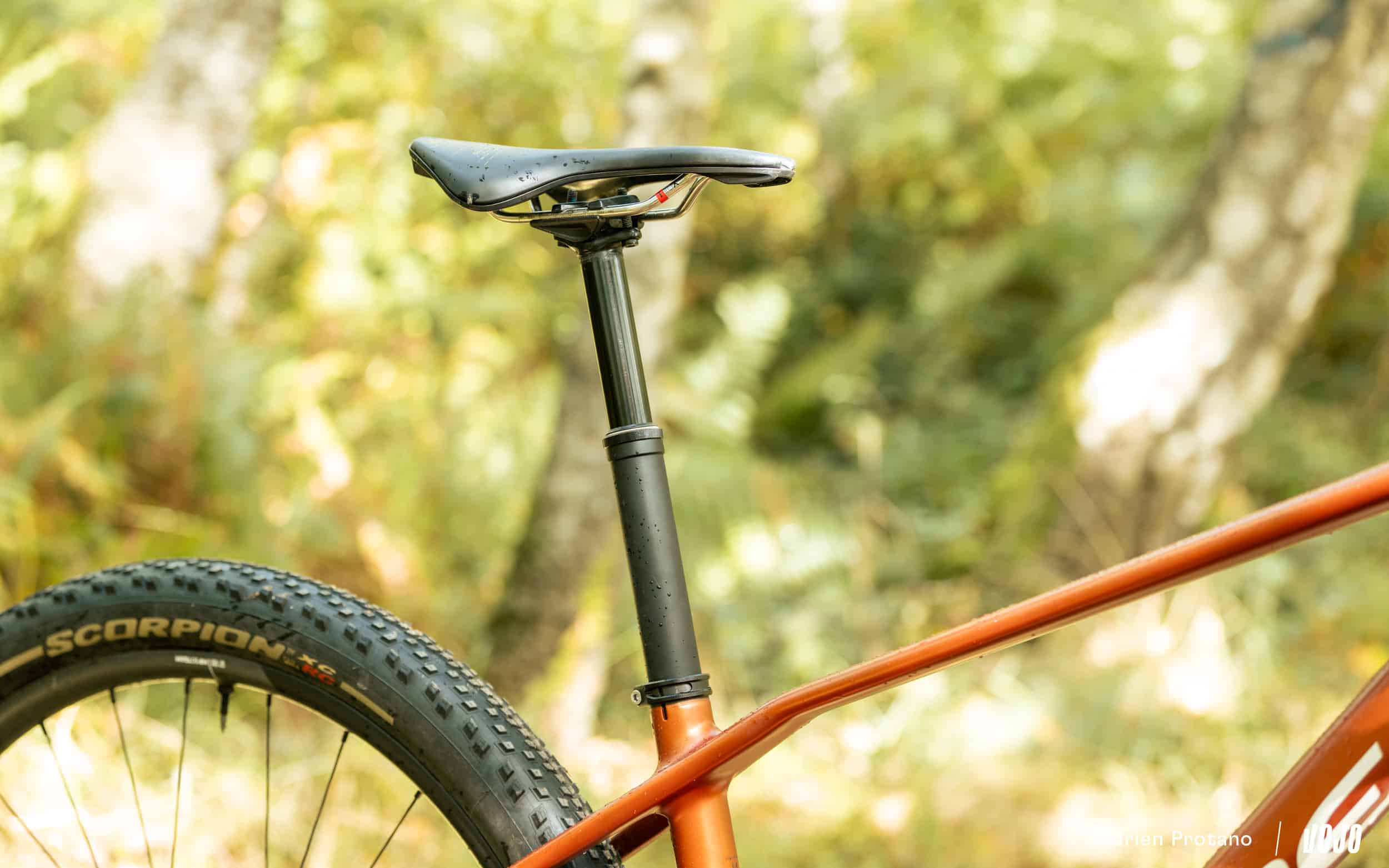 La tige de selle télescopique est maison également : la nouvelle OC MP10 affiche 100 mm de débattement pour un poids de seulement 413 g. Sa longueur totale, parmi les plus réduites du marché, facilite le montage même sur les petits cadres. L’option tige de selle télescopique n’est pas présente d’origine sur ce montage, et nécessite un petit surplus de 107 €.
